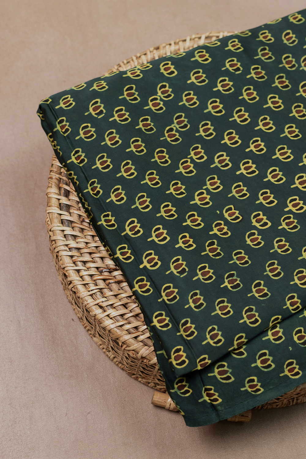 Lotus - Dark Green Ajrak Modal Silk Fabric
