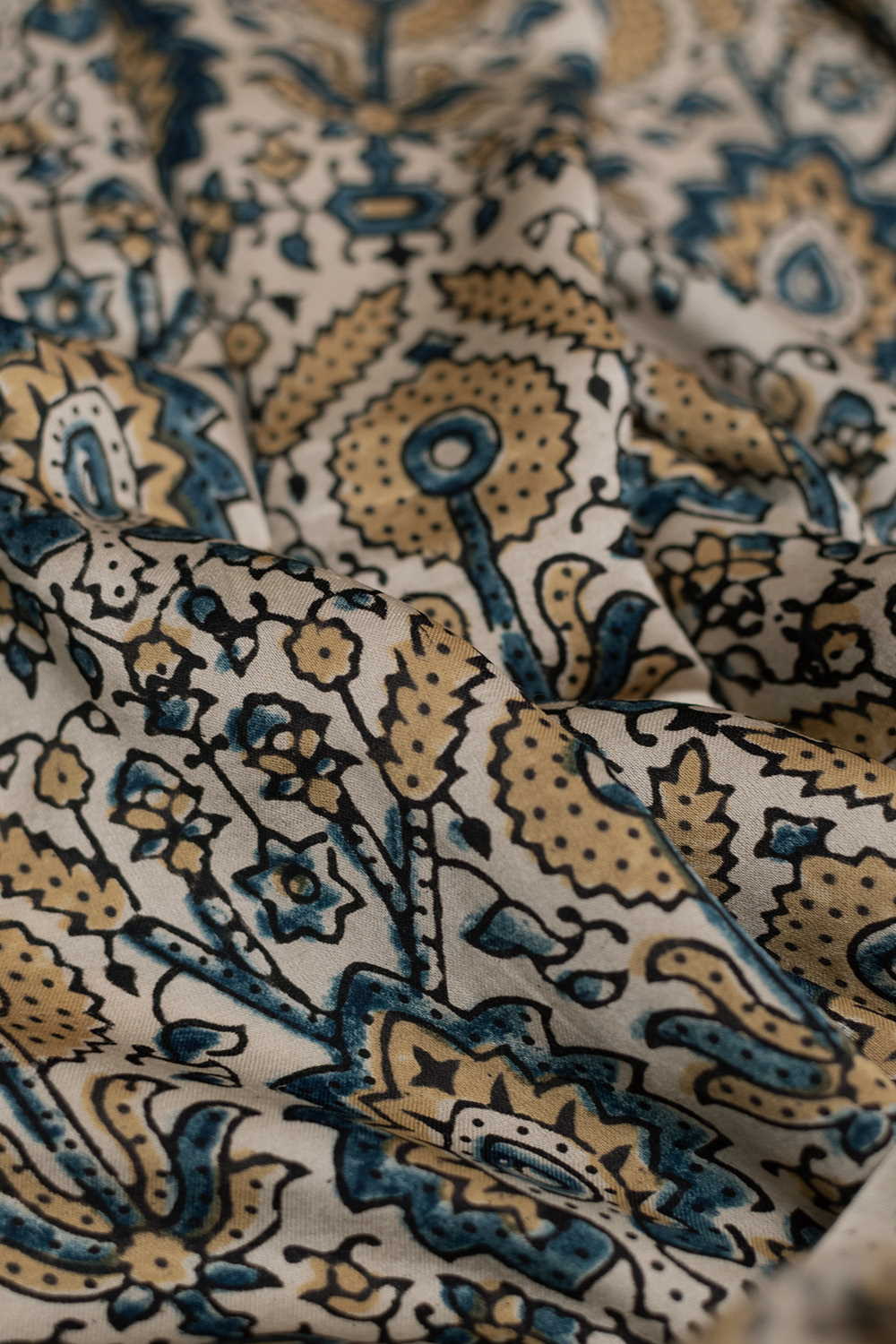 Intricate Design - Cream Ajrak Modal Silk Fabric - 0.75m