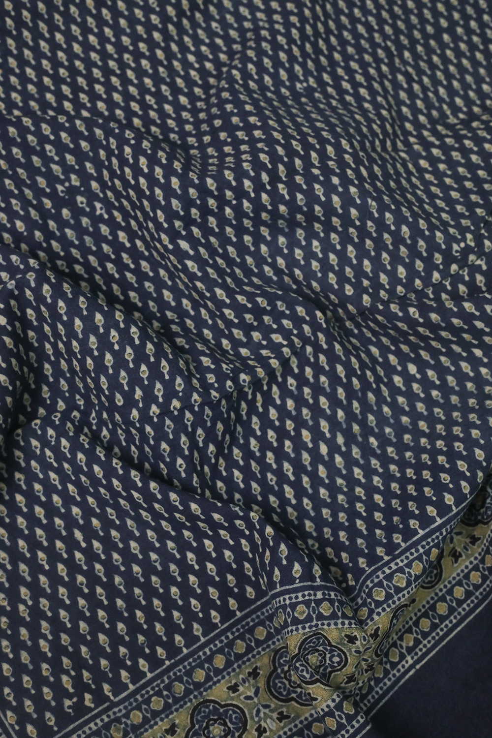 Green Motifs on Indigo Ajrak Kaftan Cotton Fabric