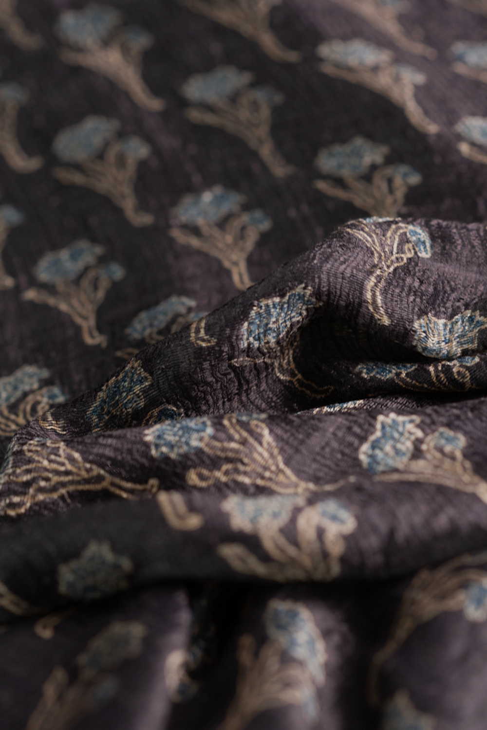 Grey with Blooms Ajrak Raw Silk Fabric