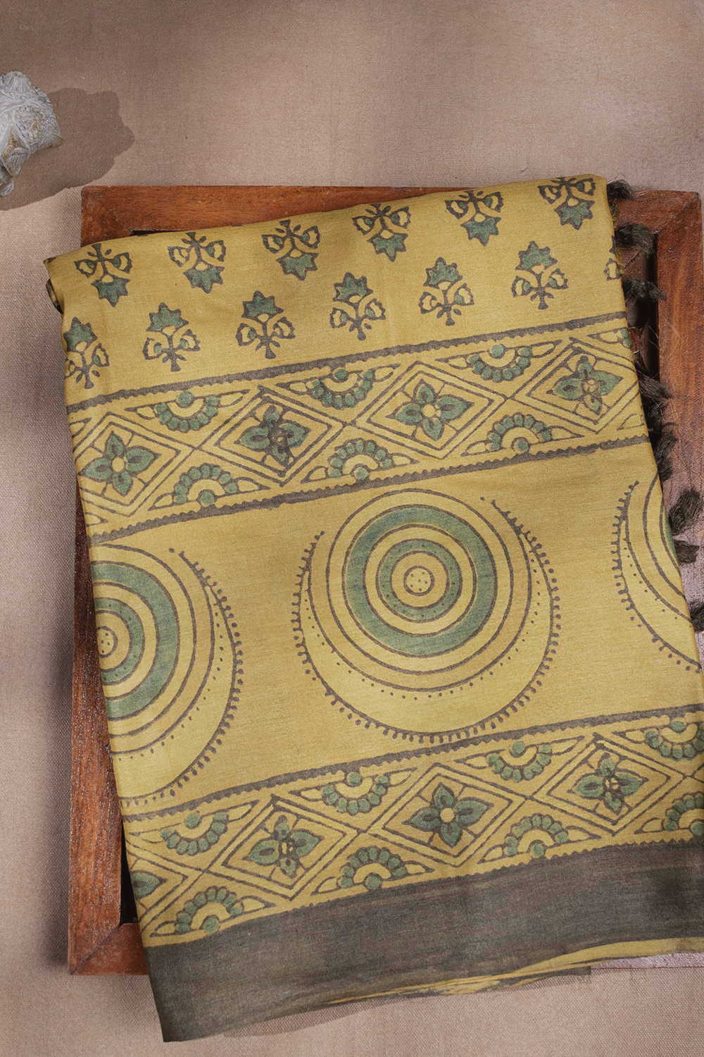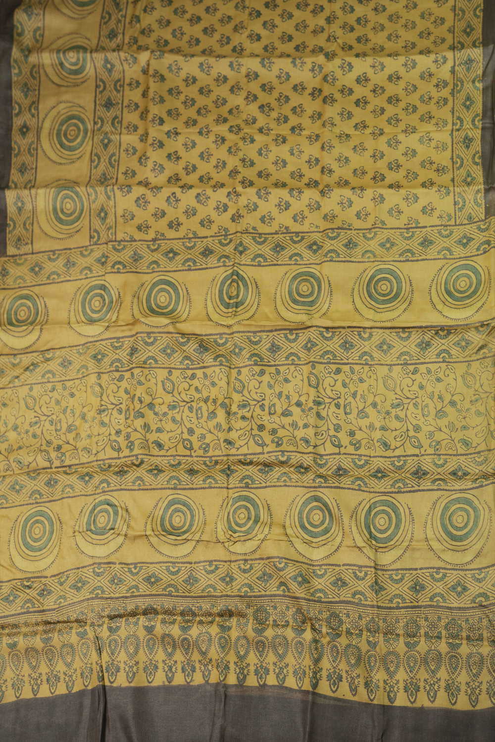 Authentic Ajrak block printed Handwoven Tussar Silk saree. Block Printed Ajrak Silk Saree in earthen shades Ajrak is very distinct from the other styles of block printing and can be identified with the intricacy of prints and the natural tone. The saree comes with blouse.