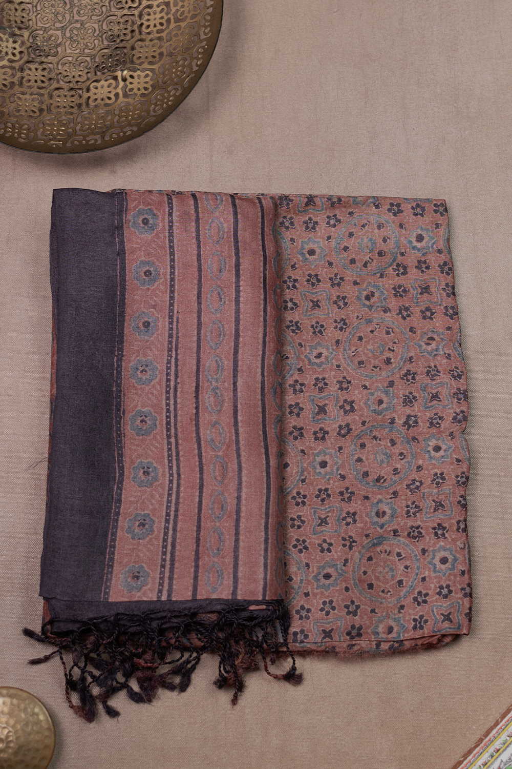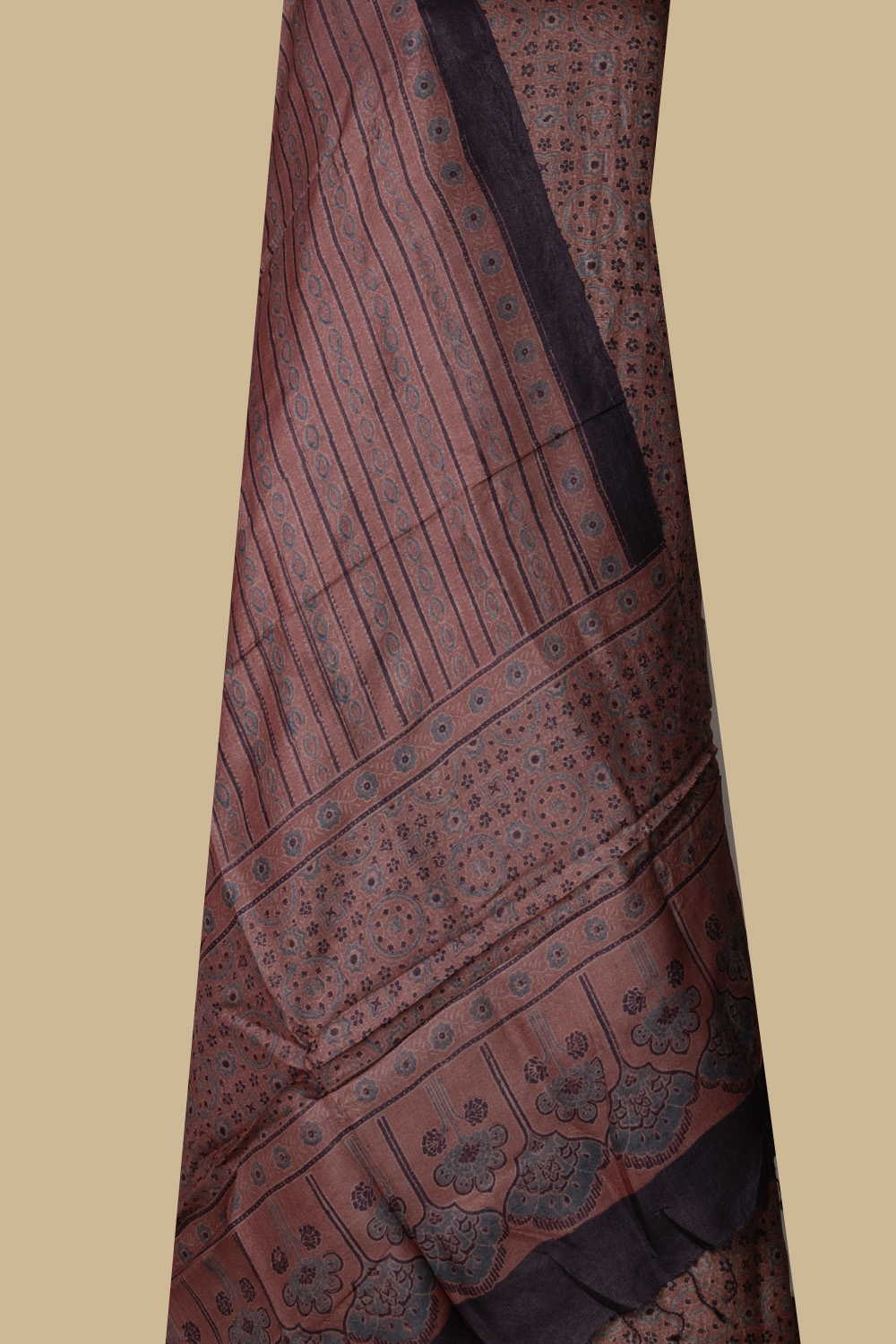 Muted Maroon Ajrak Tussar Top & Dupatta