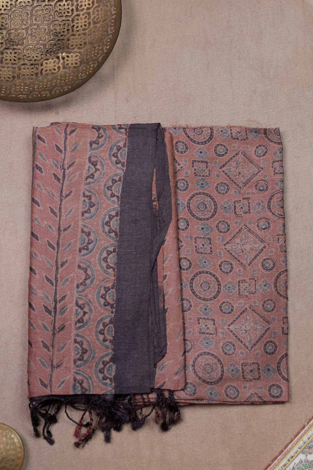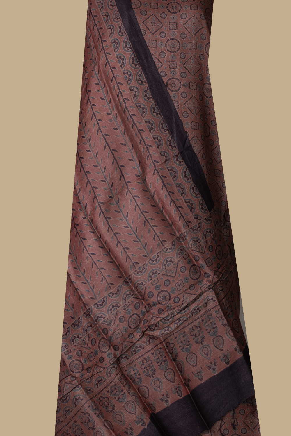 Faded Maroon with Pattern Ajrak Tussar Top & Dupatta