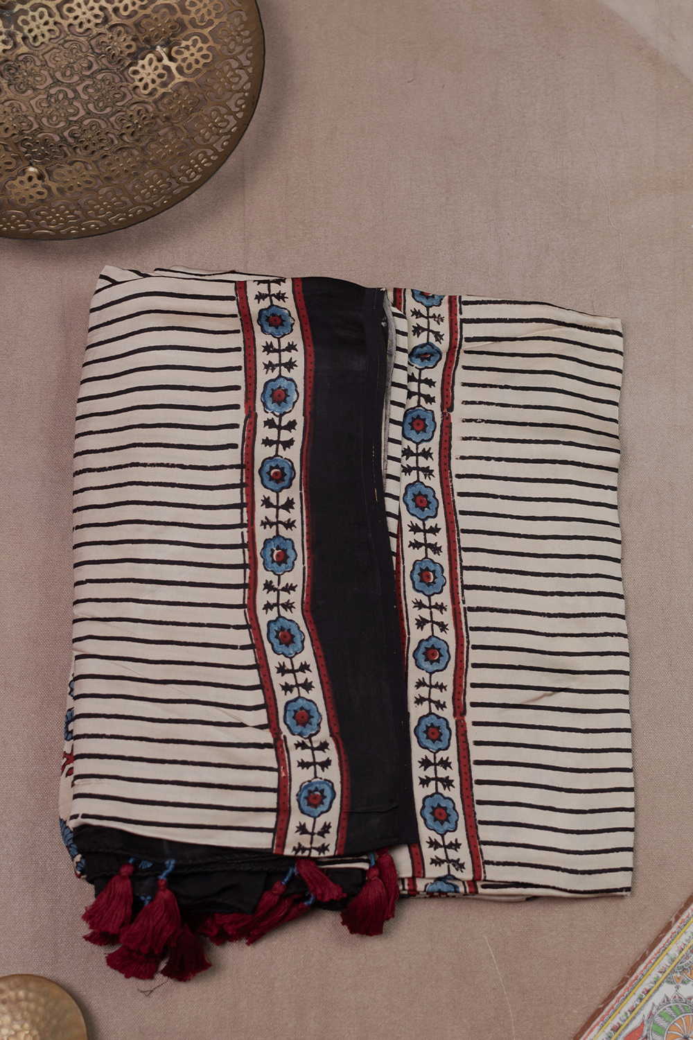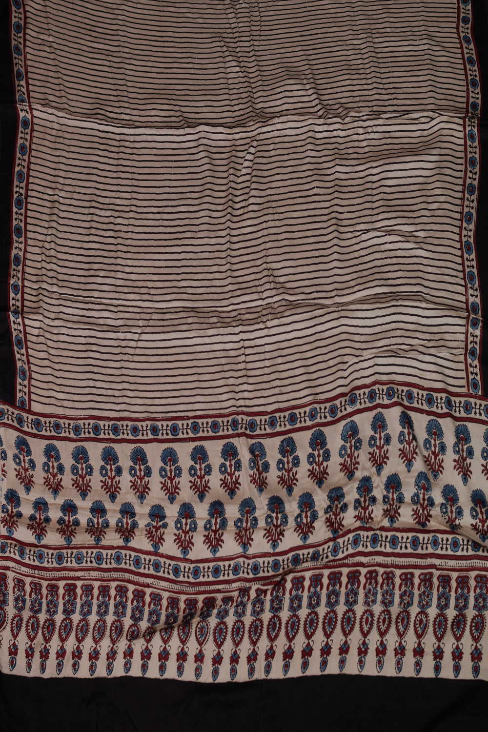 Snow Cream Ajrak Modal Silk Top & Dupatta