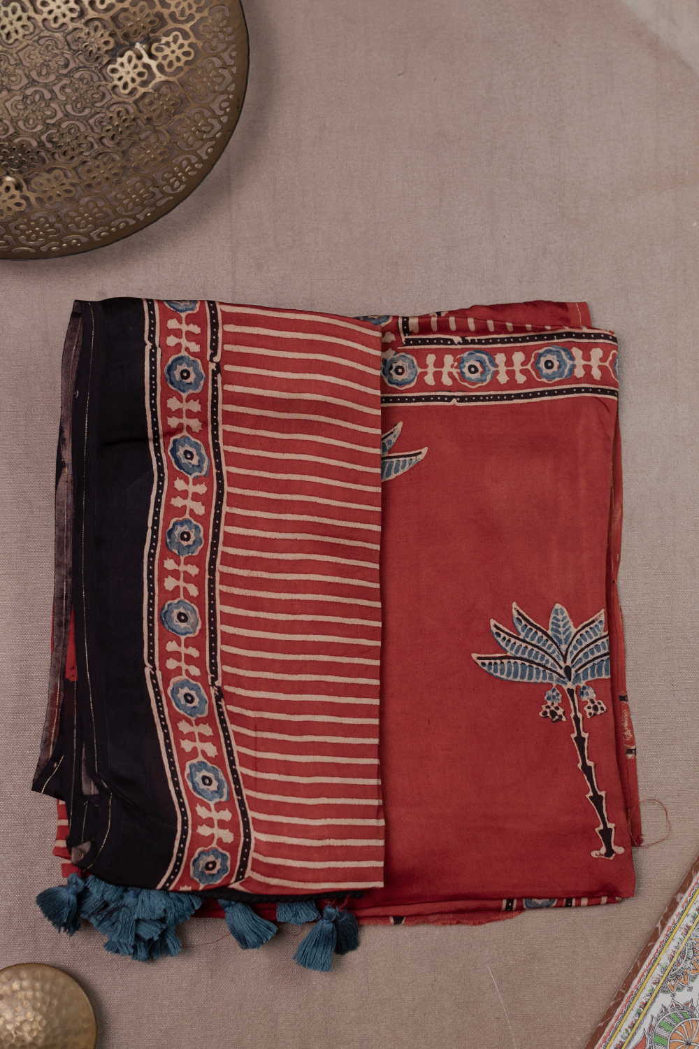 Dark Maroon Ajrak Modal Silk Top & Dupatta