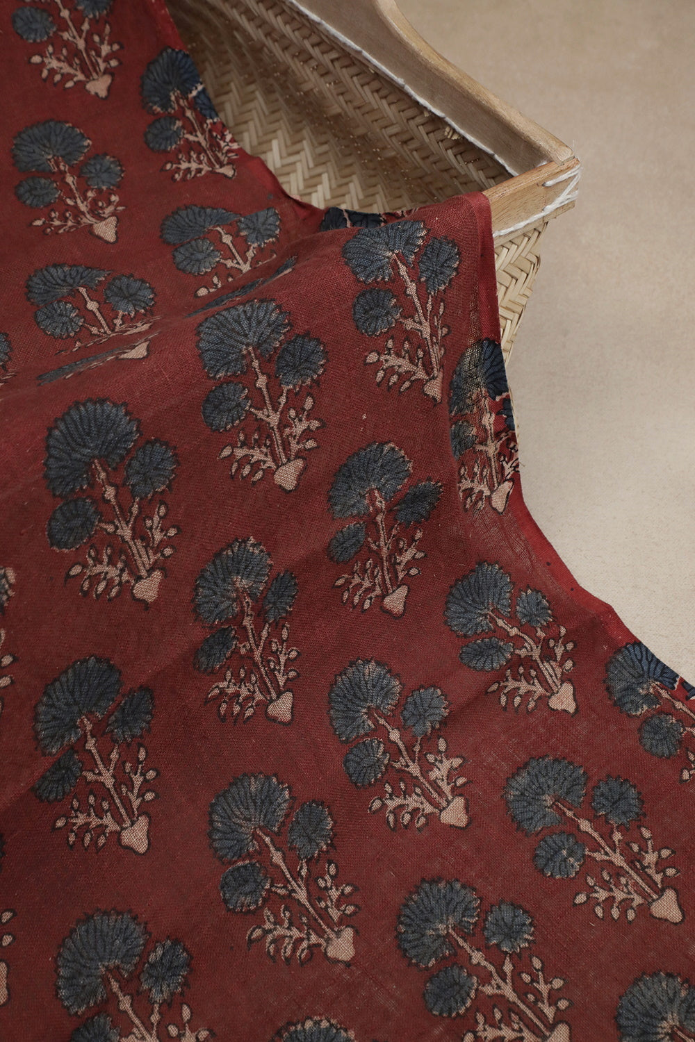 Buy Beautifully Hand Block Printed Ajrakh on Linen at Matkatus Online. The subtle texture of Linen with the Vibrant prints of Ajrak make this a go to choice on any day. The fabric is textured and has a comforting feel. The design is parallel to length.