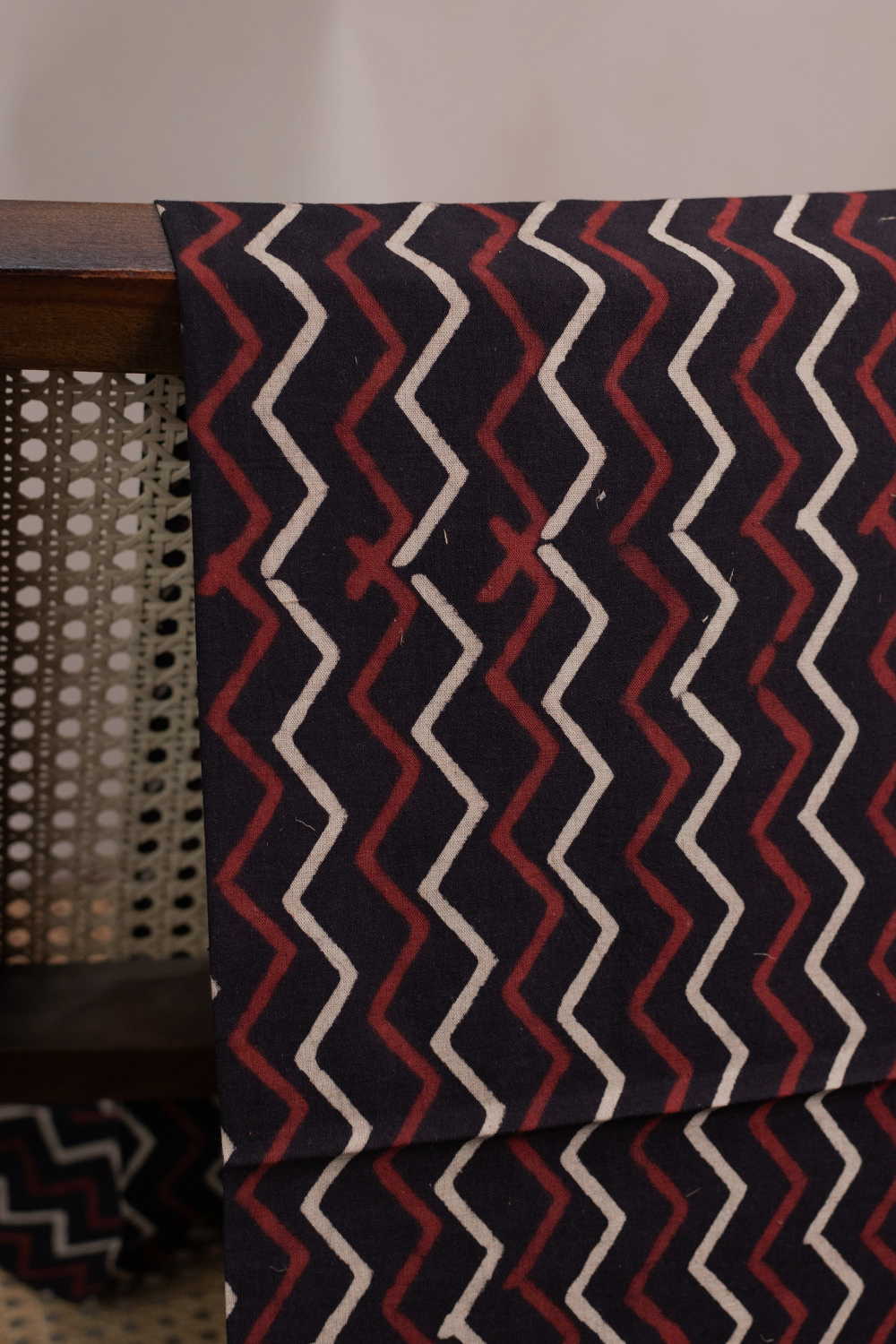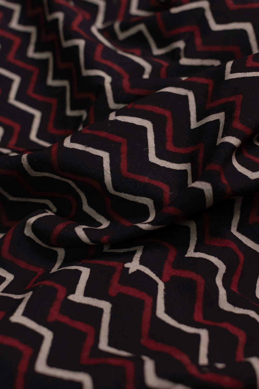 Zig Zag Pattern Ajrak Cotton Fabric - 0.85m