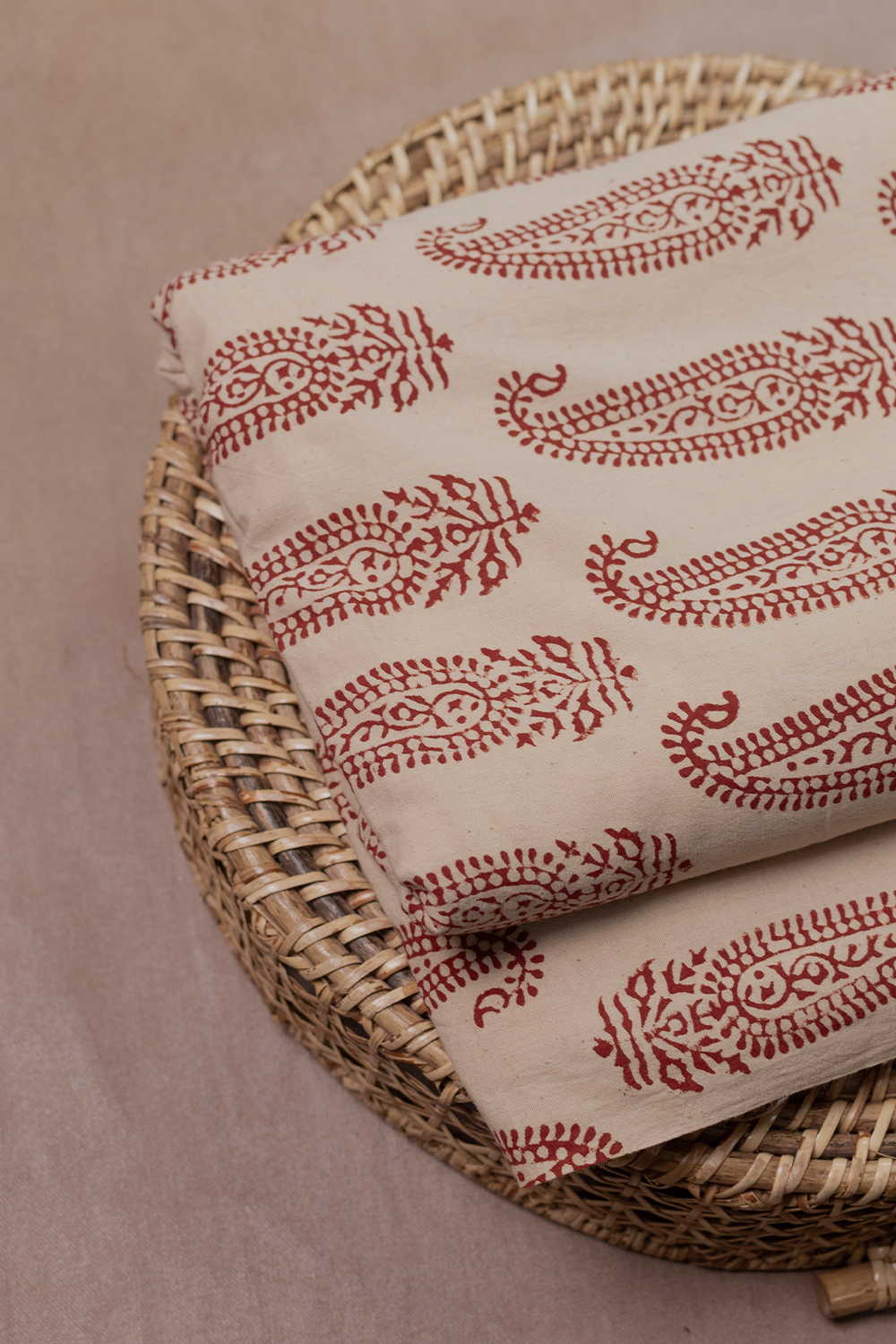 Cream Paisley Ajrak Cotton Fabric - 0.6m