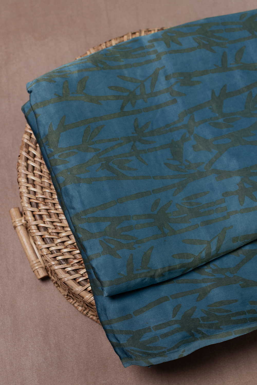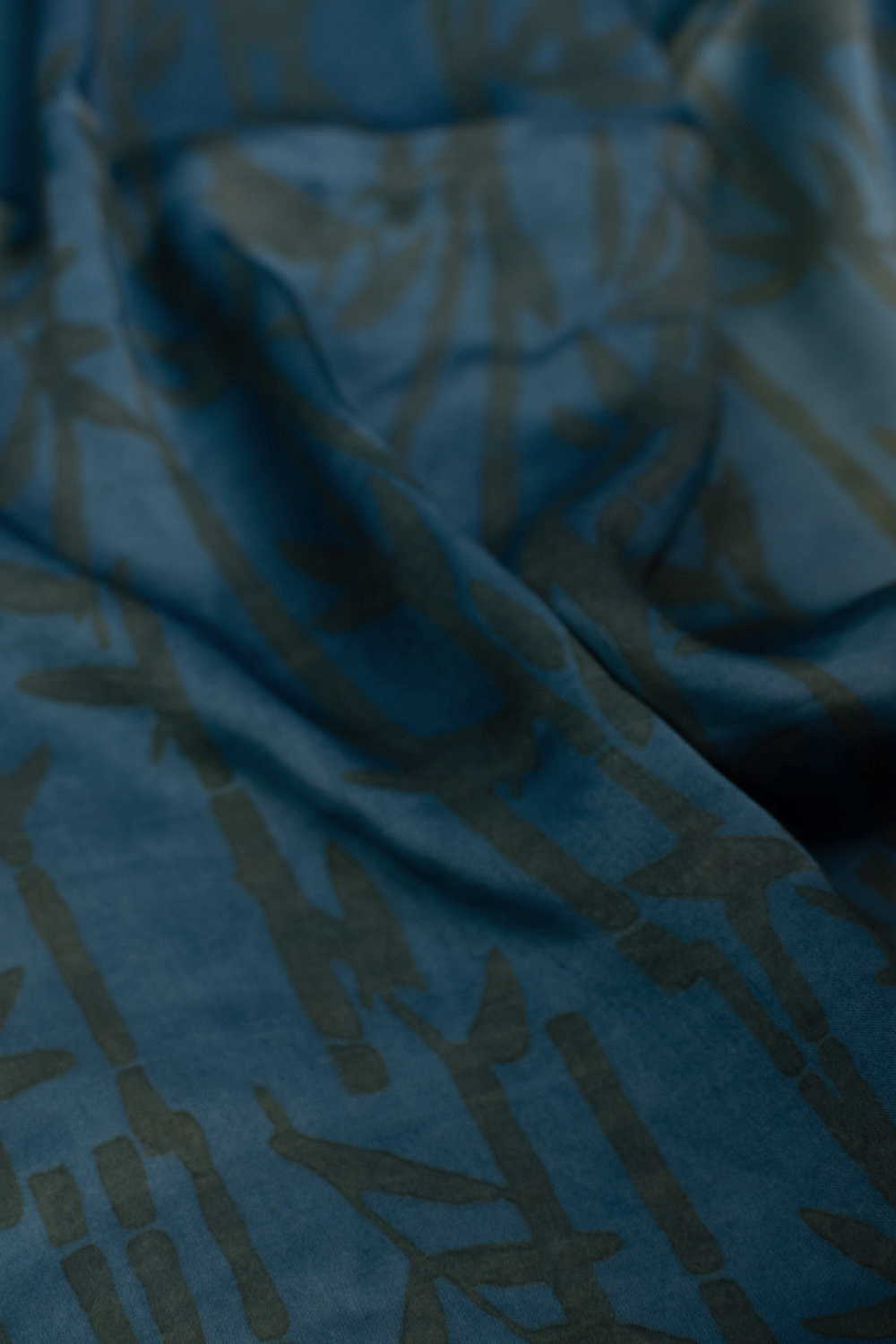 Faded Blue Ajrak Modal Silk Fabric - 1m