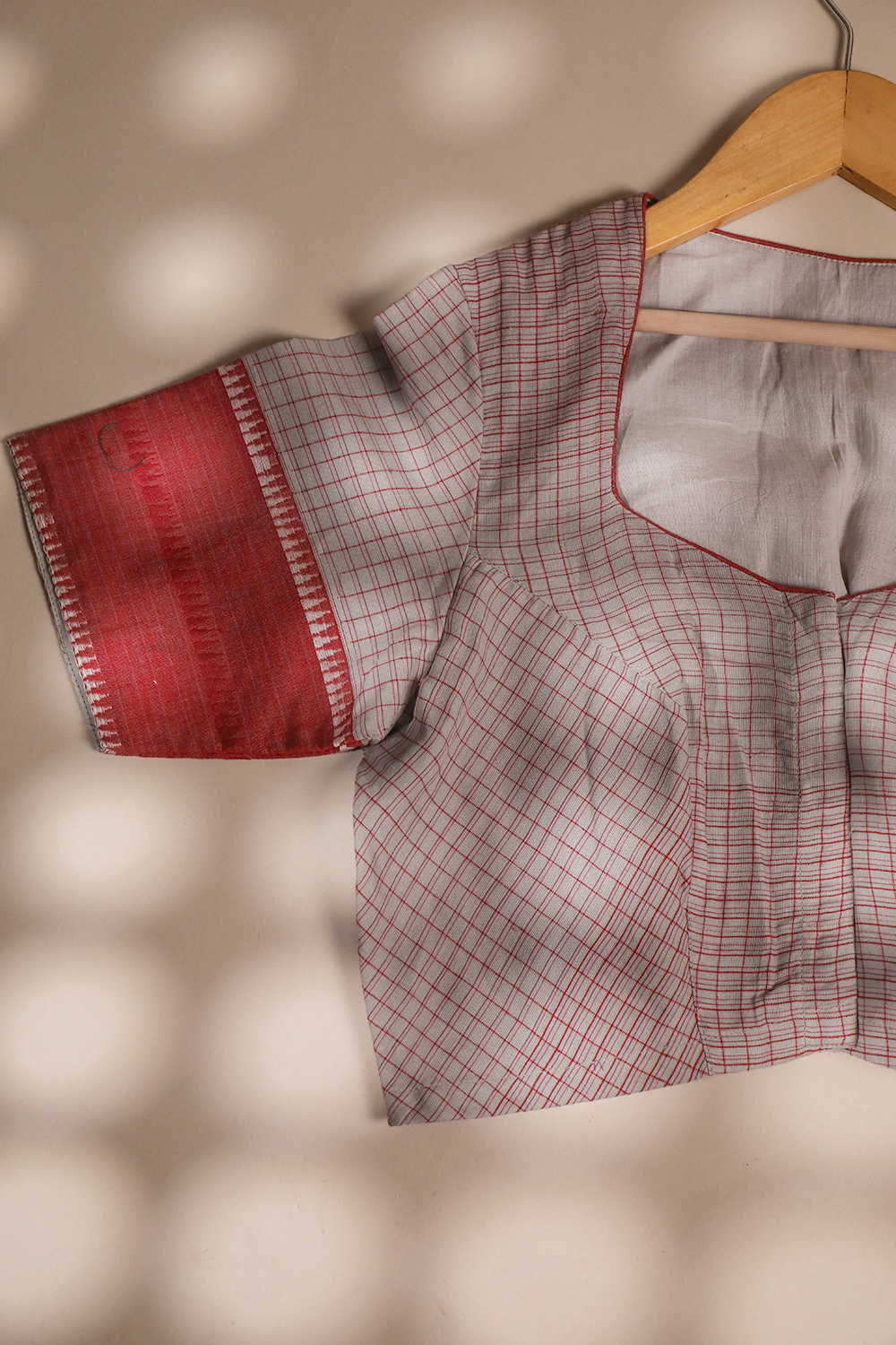 Checkered Grey Handwoven Blouse - 32,34,36,38,40,42