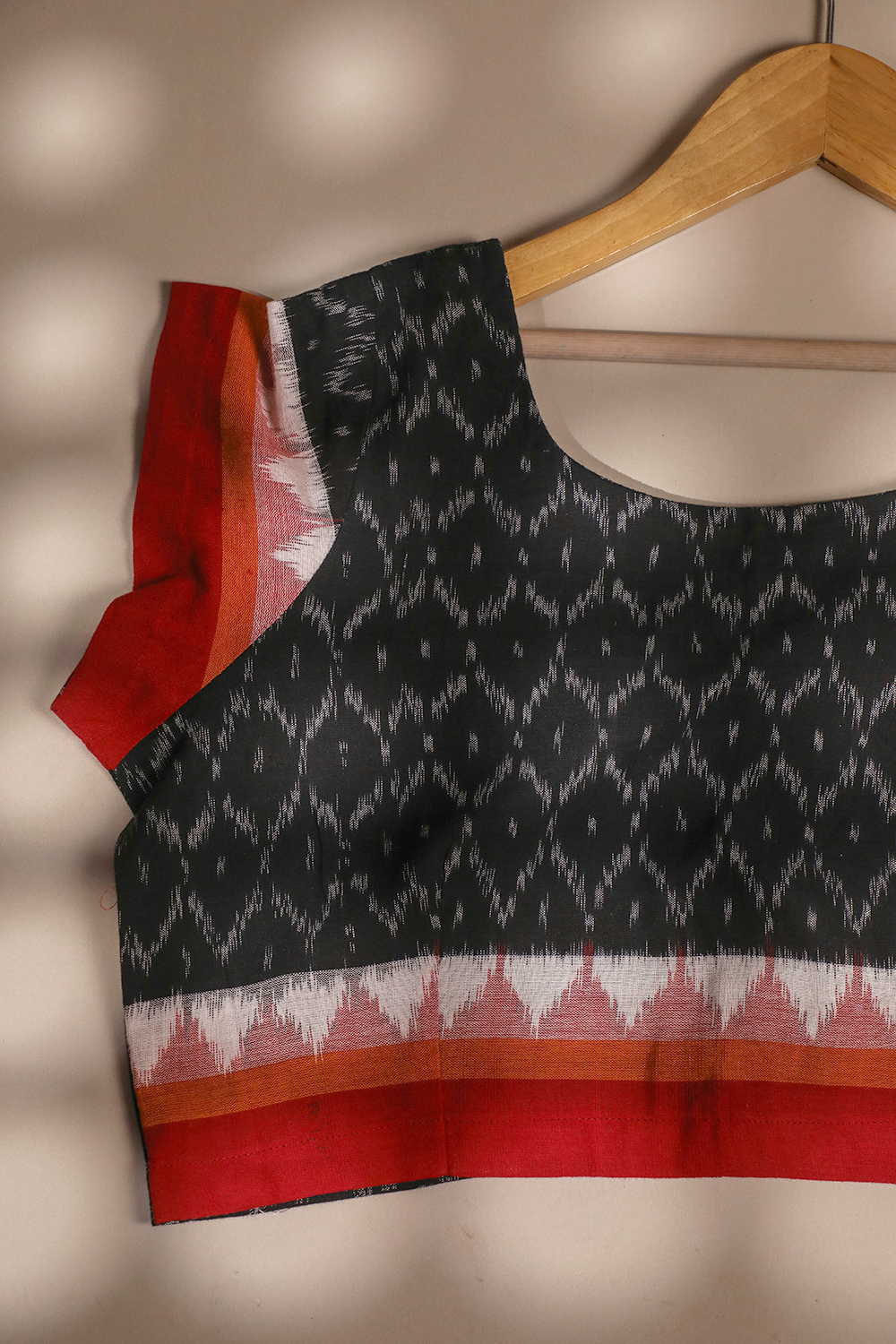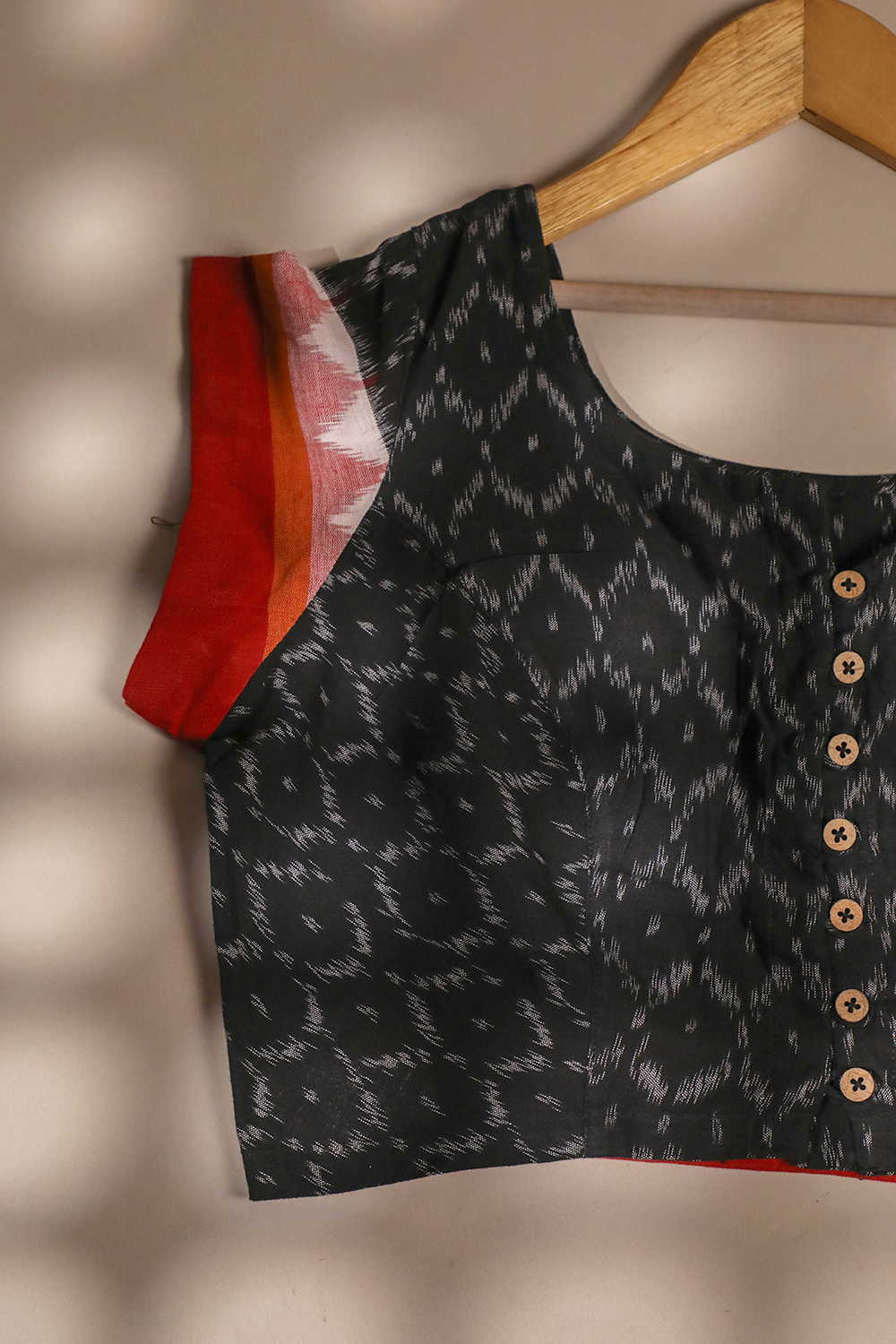 Black ikat with Kalamkari Stitched Blouse - 32,34,36,38,40,42,44