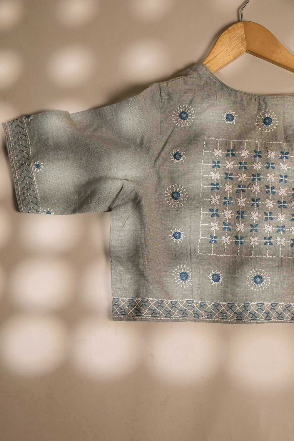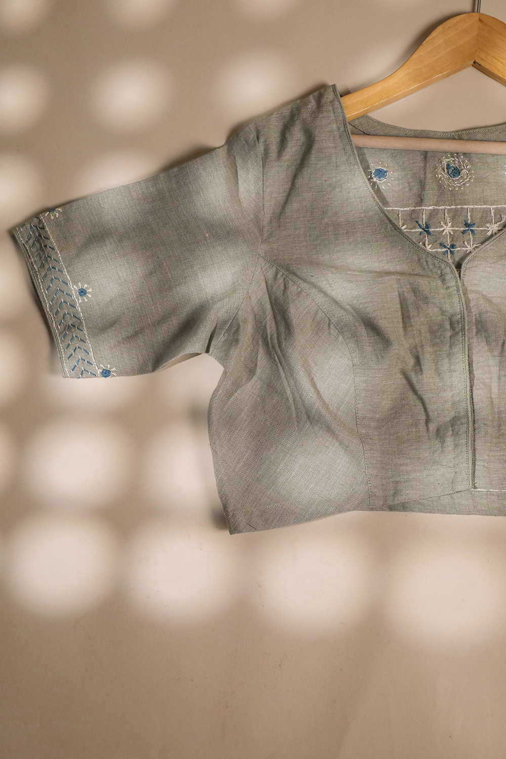 Light Grey Yarn Dyes Stitched Blouse - 34,36,38,40,42