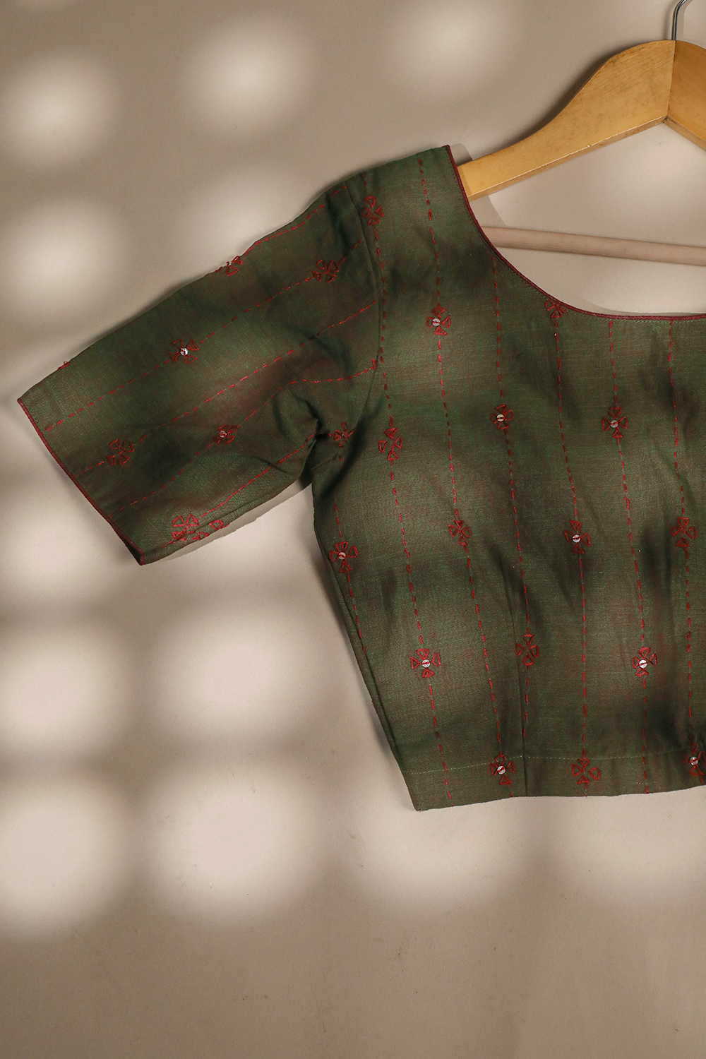 Green Kanchi Cotton Stitched Blouse - 34,36,38,40,42