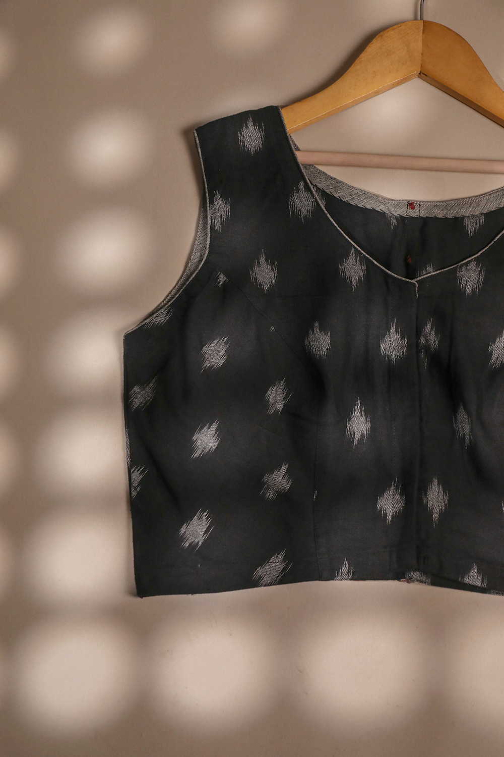 Black Ikat Mirror Work Sleeve Stitched Blouse 32, 34, 36, 38 & 40