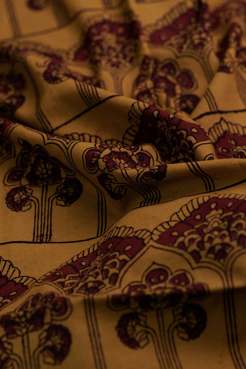 Intricate Design on Warm Yellow Bagh Cotton Fabric
