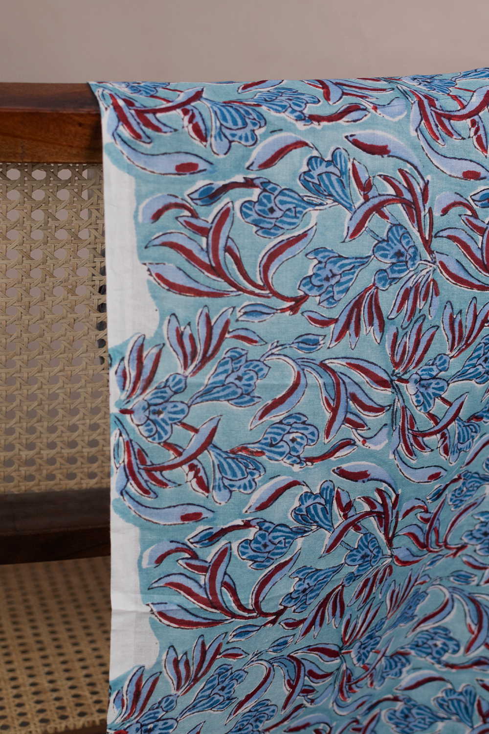 Florals on Blue Mul Cotton Sanganeri Fabric