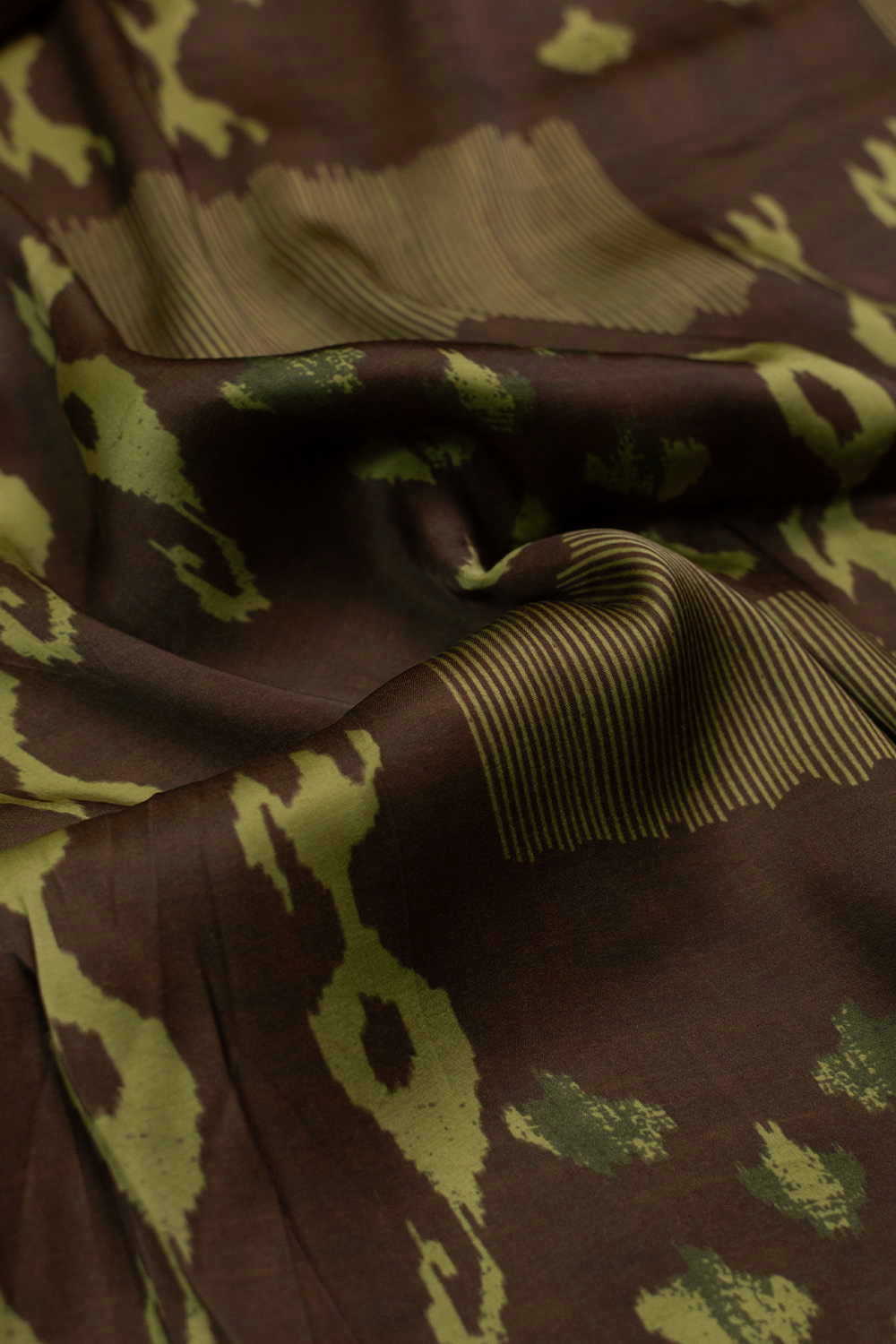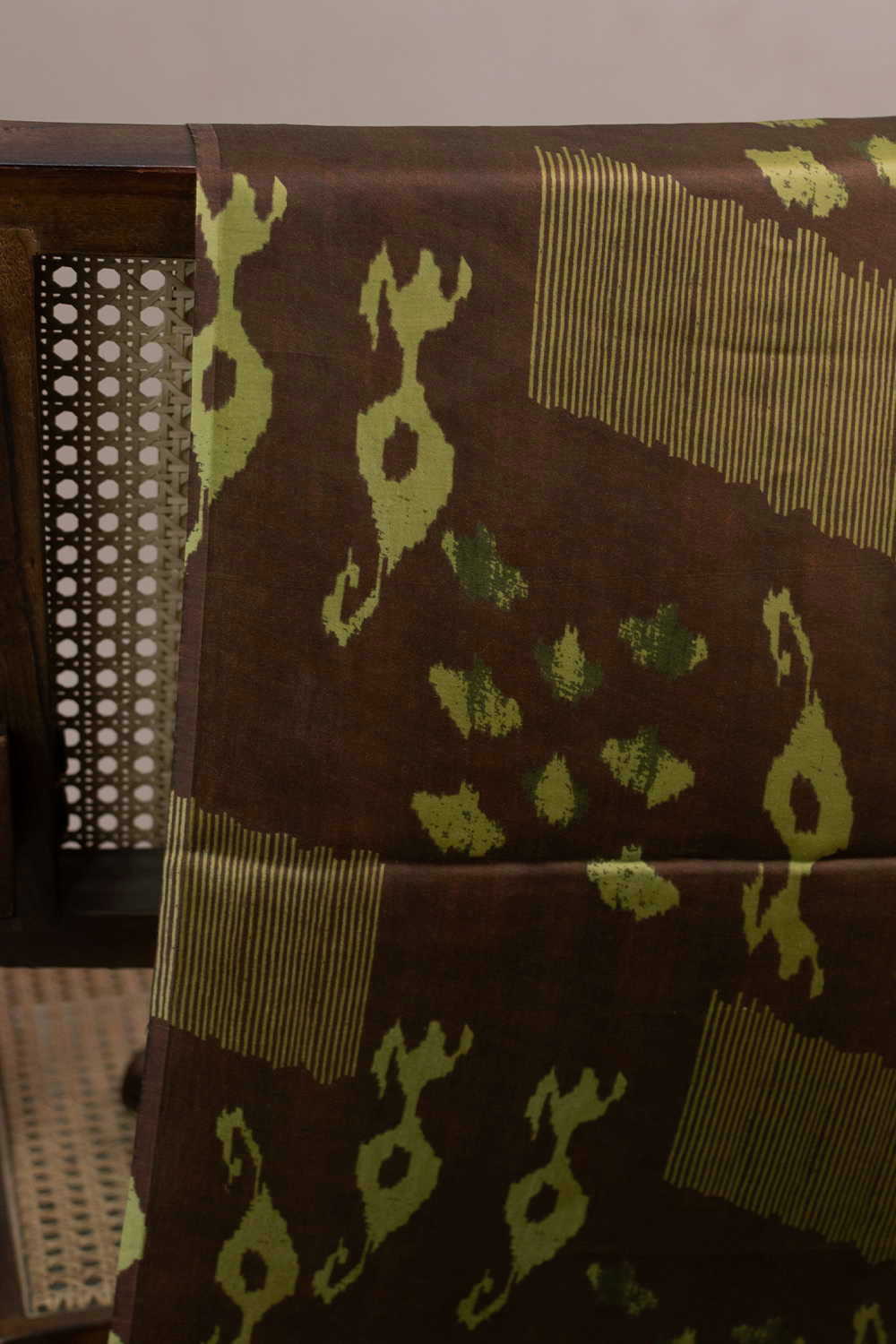 Brown Block Printed Modal Silk Fabric - 1m