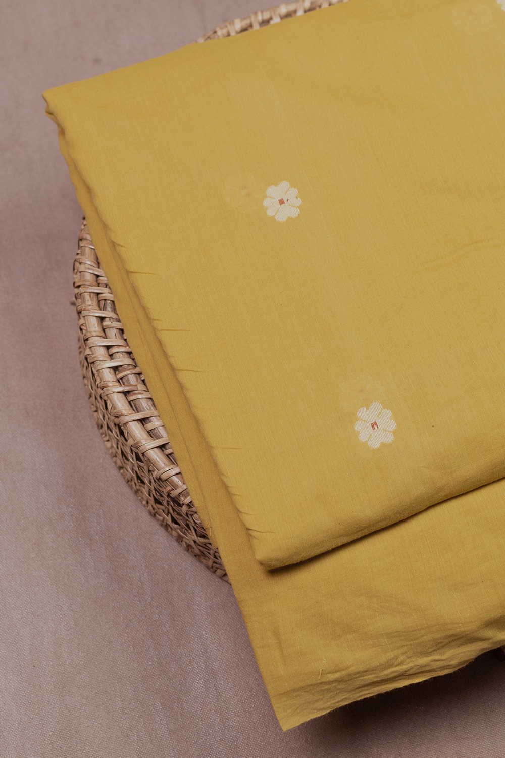 Cream Butta on Yellow Jamdani Cotton Fabric - 0.5m
