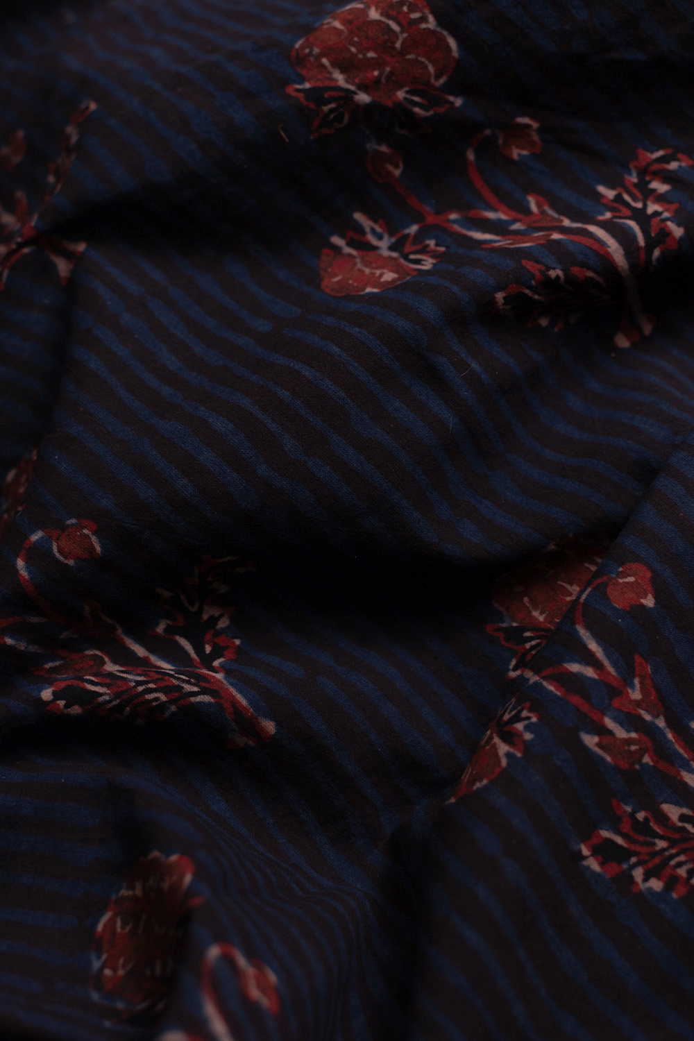 The Intricate block prints from Kutch with their Sindhi roots comes in definite geometric and floral patterns in natural shades. Ajrak is very distinct from the other styles of block printing and can be identified with the intricacy of prints and the natural tone. Soft cambric cotton fabric with Ajrak block prints - define your unique style. The Design is Parallel to the Length.