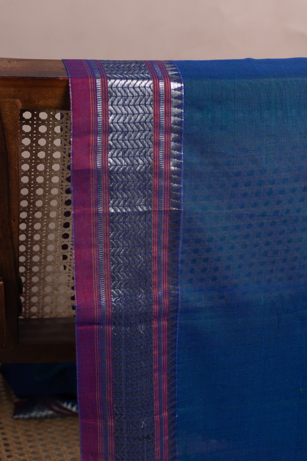 Silver Zari Border - Blue Narayanpet Cotton Fabric - 0.7m