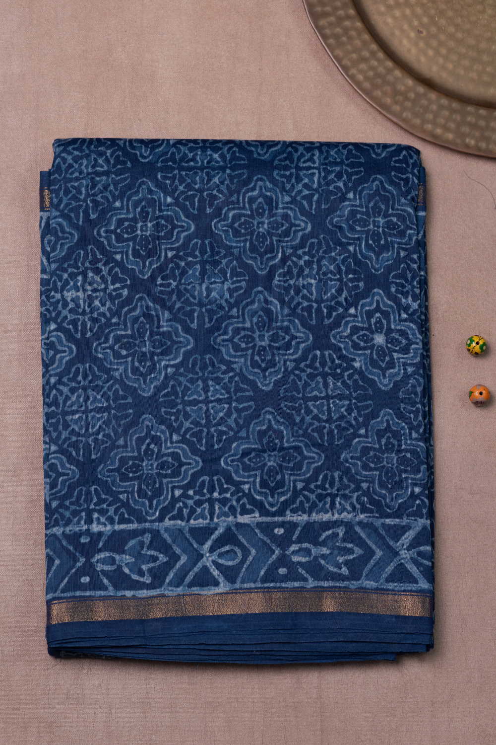 Indigo with Pattern Block Printed Chanderi Silk Cotton saree