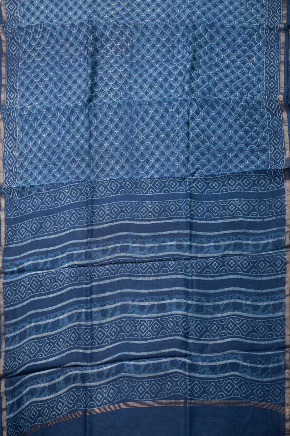 Mosaic Pattern Block Printed Chanderi Silk Cotton saree