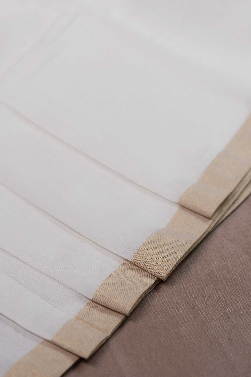 Gold Zari Border Mercerized Chanderi Silk Cotton Fabric