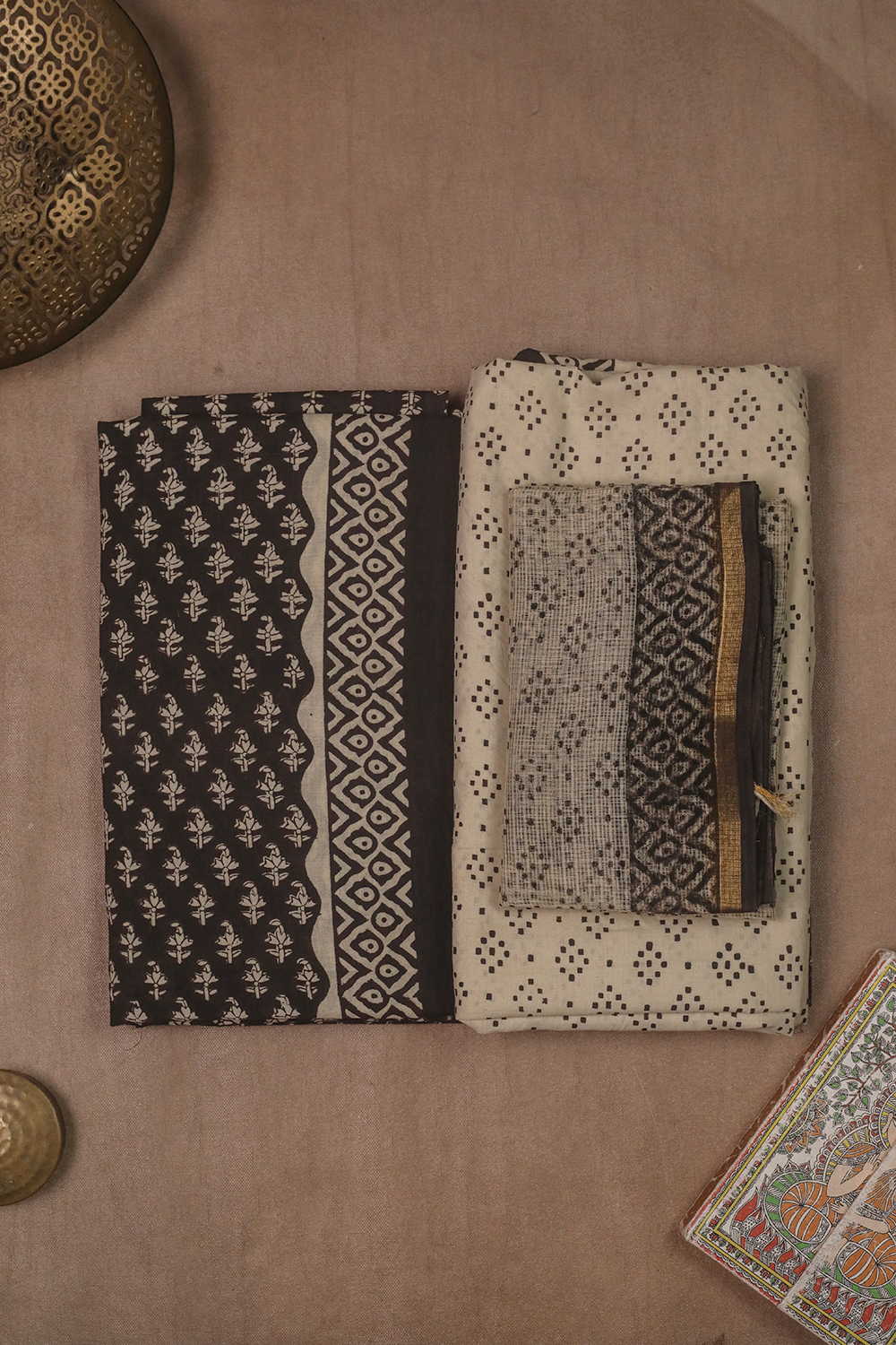 Mini Florets on Black Block Printed Mul Cotton Suit