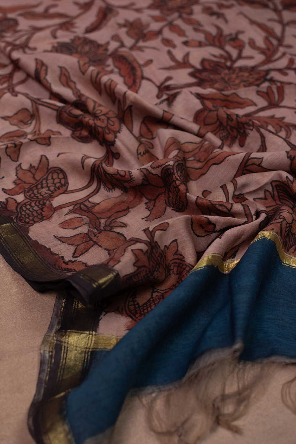 Floral Design Painted kalamkari Chanderi Silk Cotton Dupatta