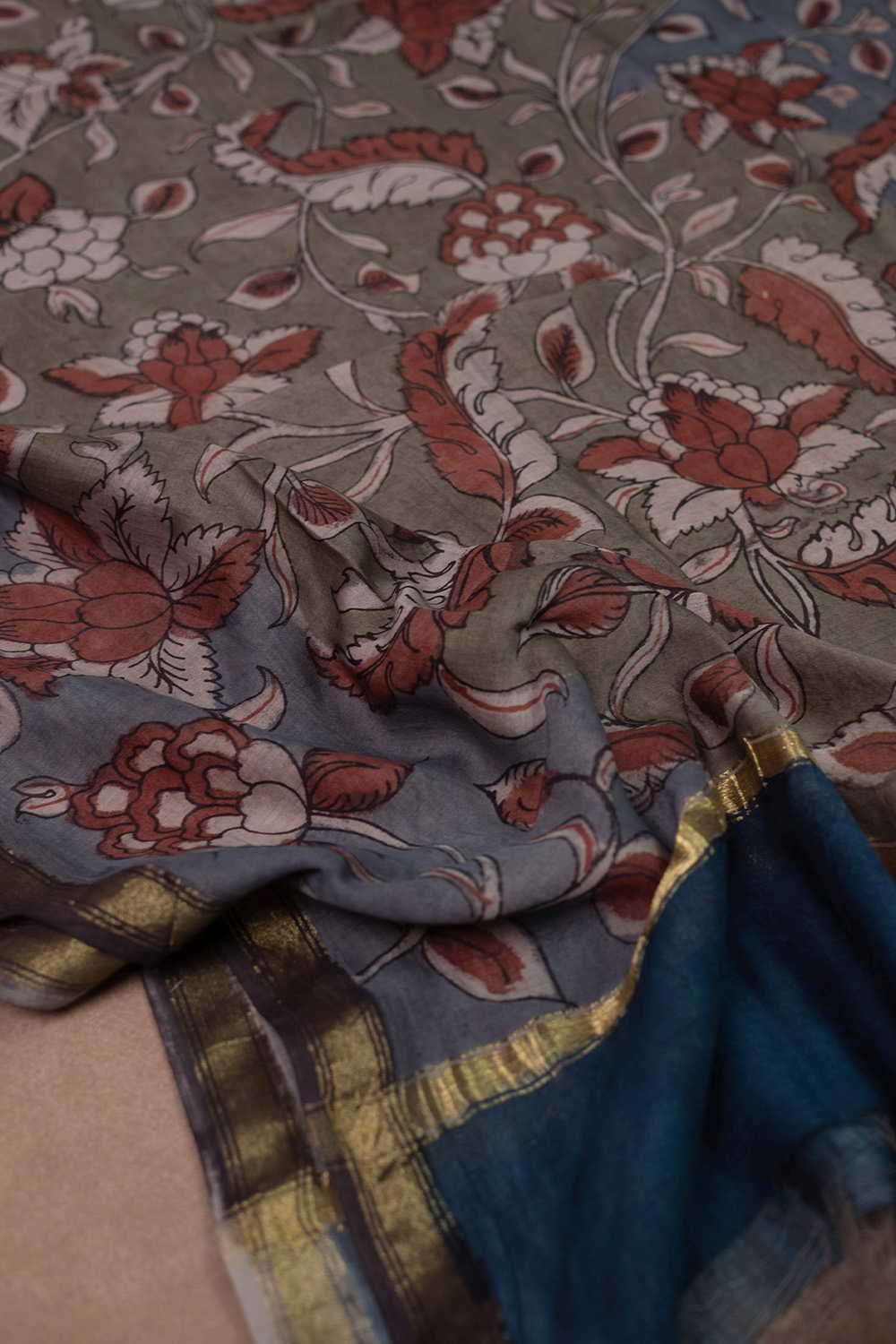 Subdued Green Painted kalamkari Chanderi Silk Cotton Dupatta