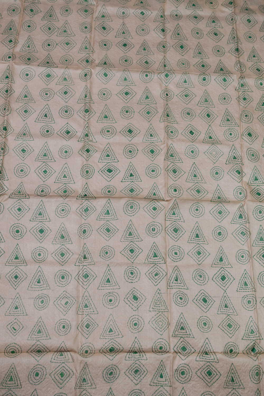 Green Patterns - Cream Kantha Silk Blouse