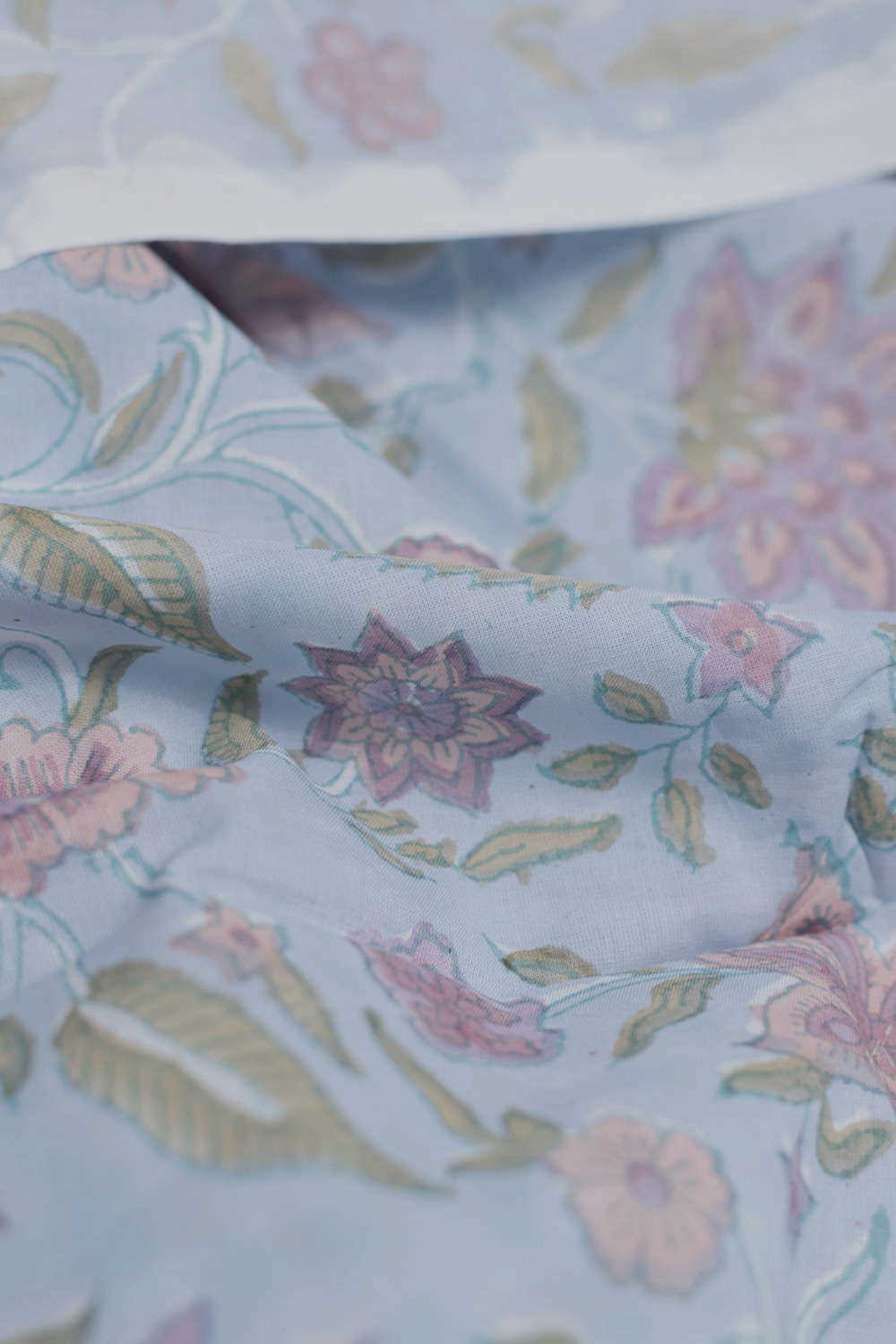 Water Coloured Blue Sanganeri Cotton Fabric - 1m