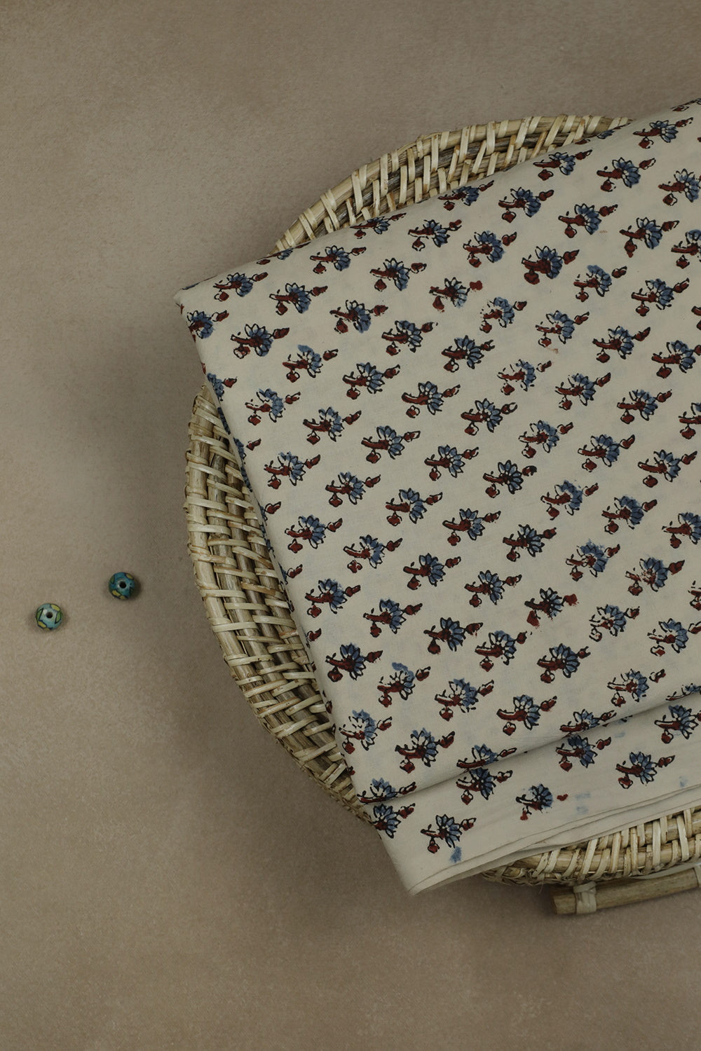 Small Floral on Cream Block Printed Ajrak Fabric