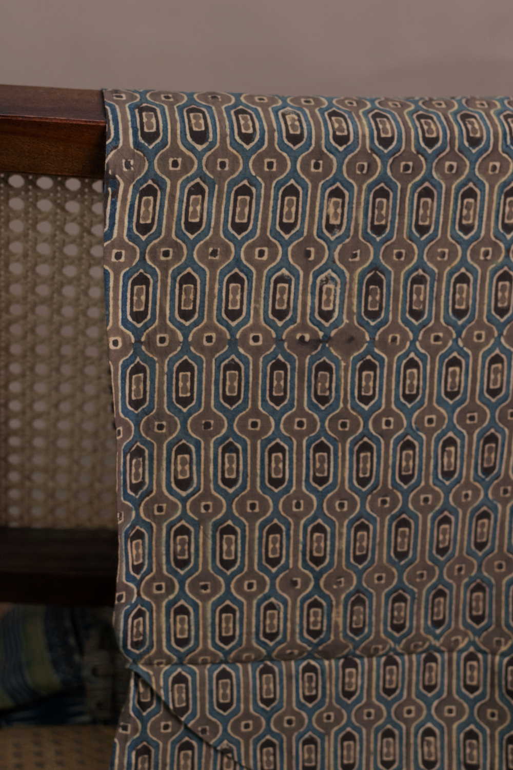 The Intricate block prints from Kutch with their Sindhi roots comes in definite geometric and floral patterns in natural shades. Ajrak is very distinct from the other styles of block printing and can be identified with the intricacy of prints and the natural tone. Soft cambric cotton fabric with Ajrak block prints - define your unique style. The Design is Parallel to the Length.