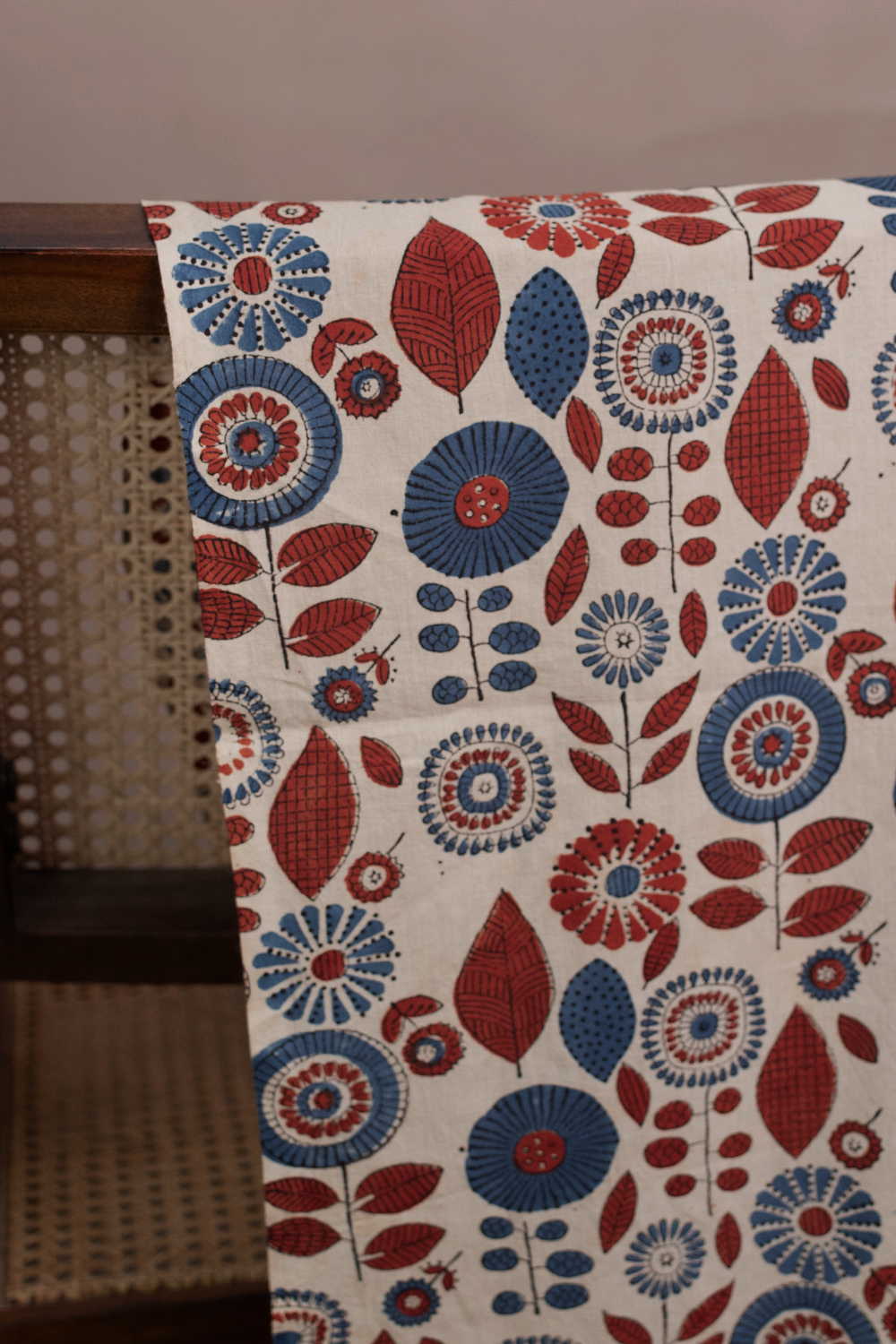 Colorful Floral on Cream Ajrak Cotton Fabric