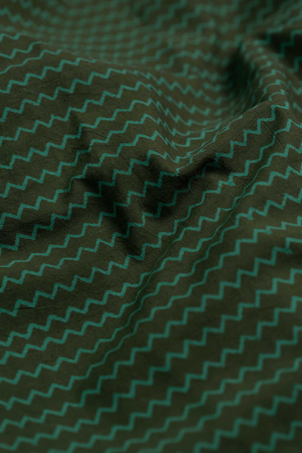 Chevron Green Block Printed Cotton Fabric