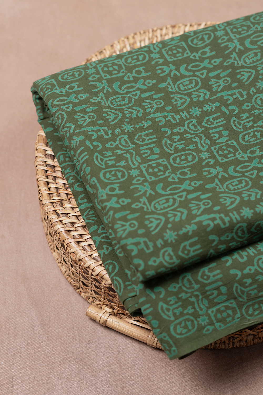 Carnival Green Block Printed Cotton Fabric