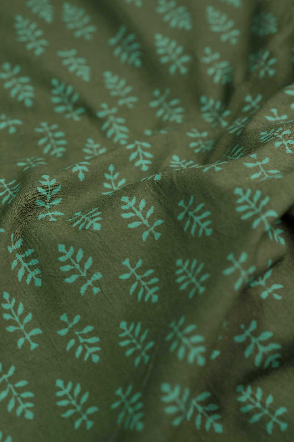 Green with Motifs Block Printed Cotton Fabric