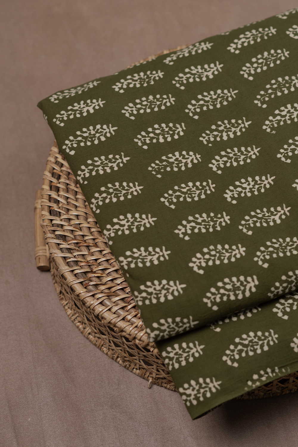 Avacado Green Block Printed Cotton Fabric