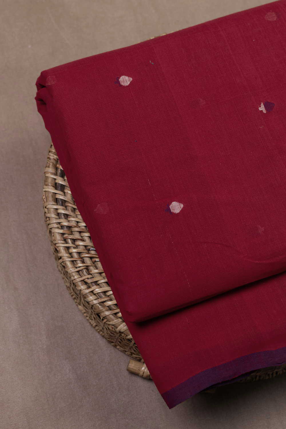 Deep Red with Butti Handspun Cotton Fabric