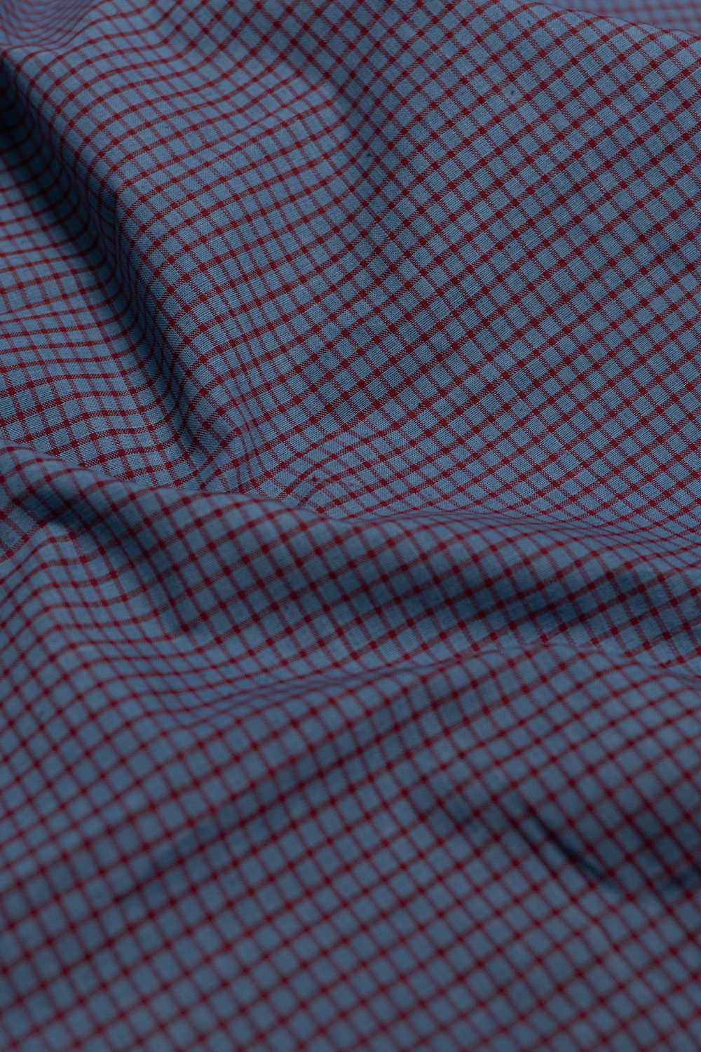 Blue with Maroon Checks Handspun Cotton Fabric