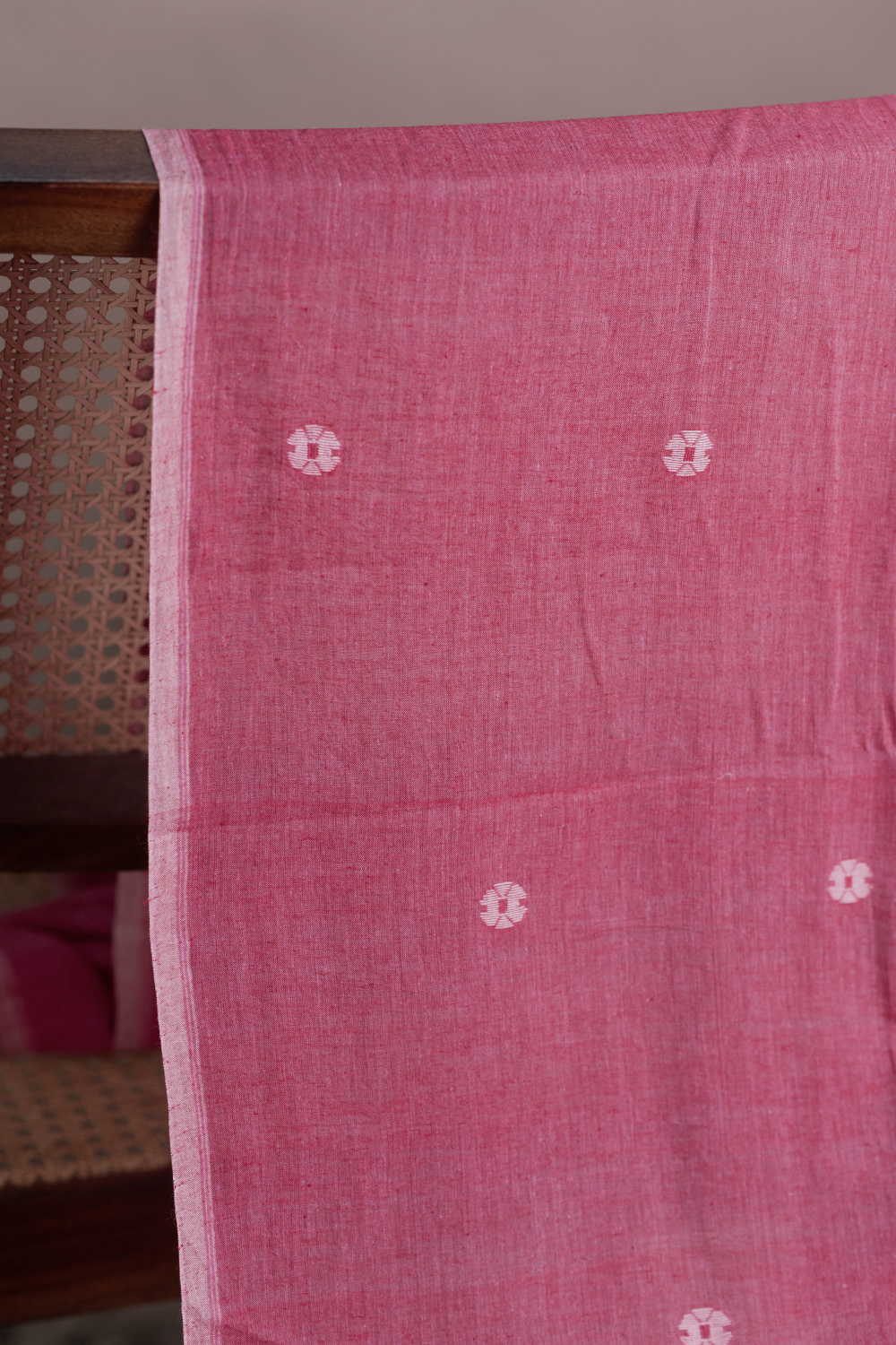 Cream Butta on Pink Jamdani Cotton Fabric