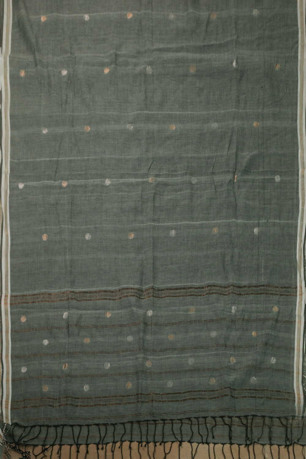 Zari Polka on Green Jamdani Cotton Dupatta