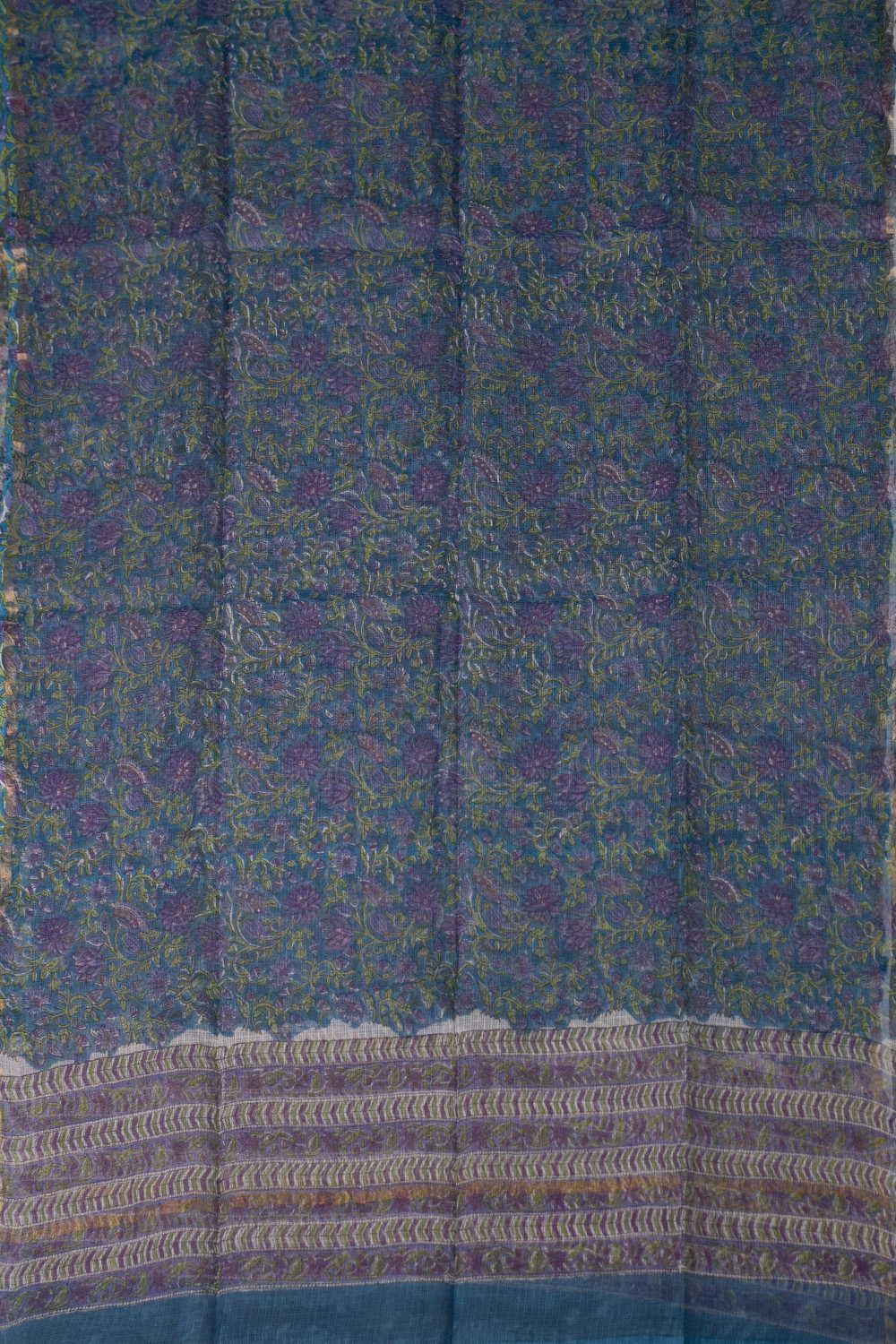 Purple & Green Floral Block Printed Kota Cotton Dupatta