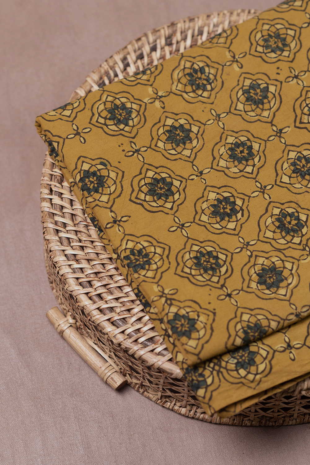 Yellow Ajrak Cotton Fabric