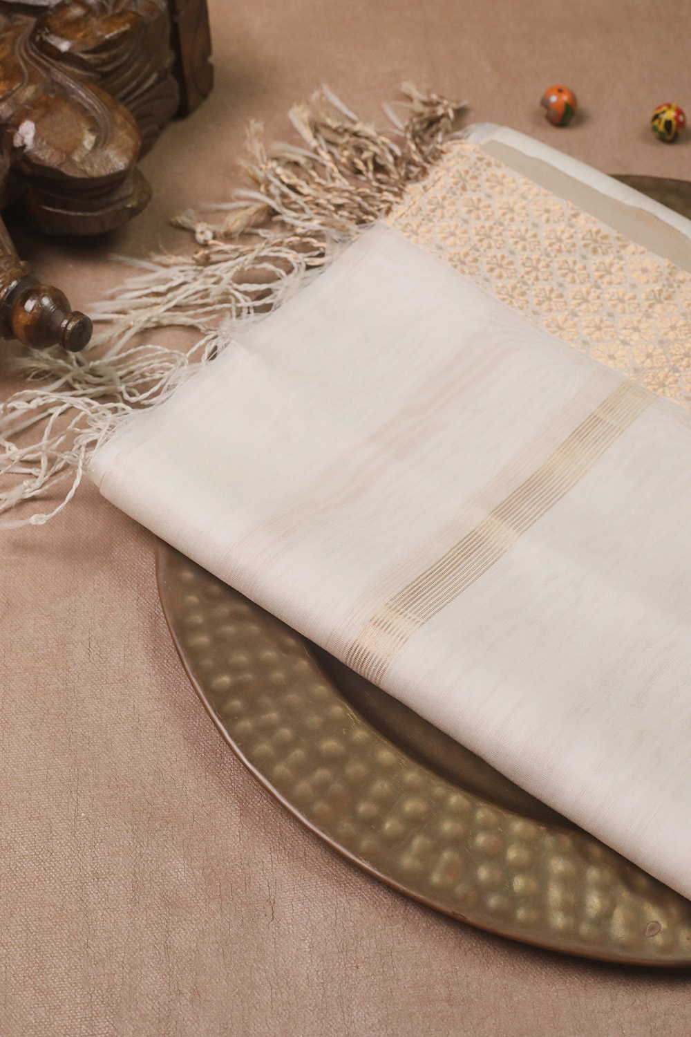 Zari Border on Cream Maheshwari Tissue Dupatta