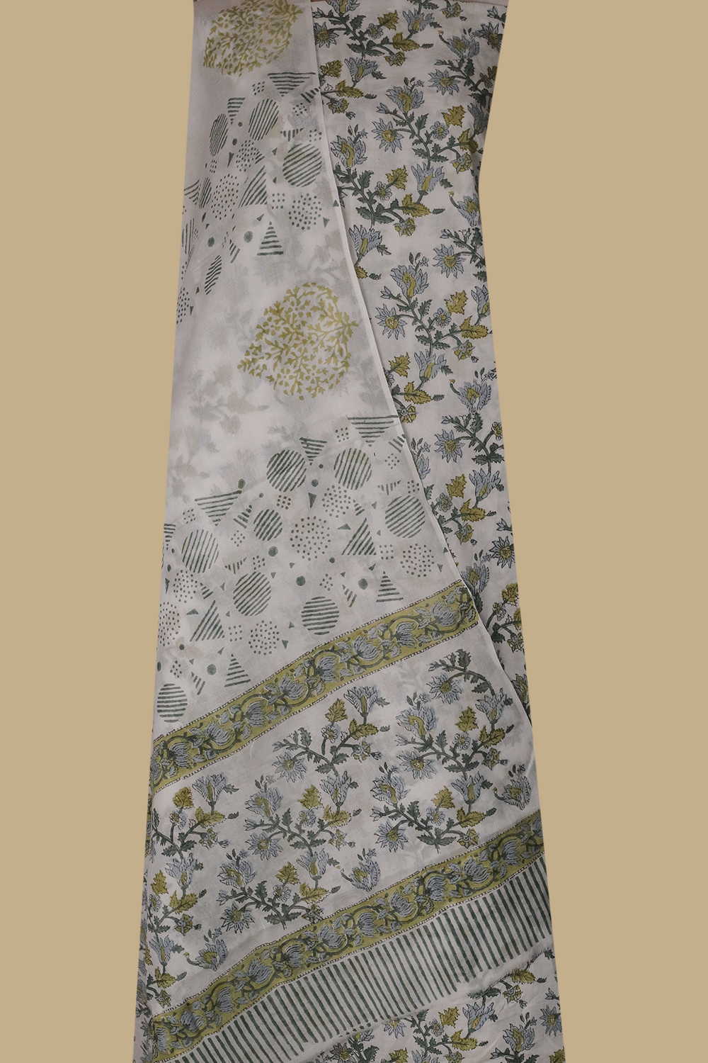 Snow Cream with Flora Block Printed Mul Cotton Suit