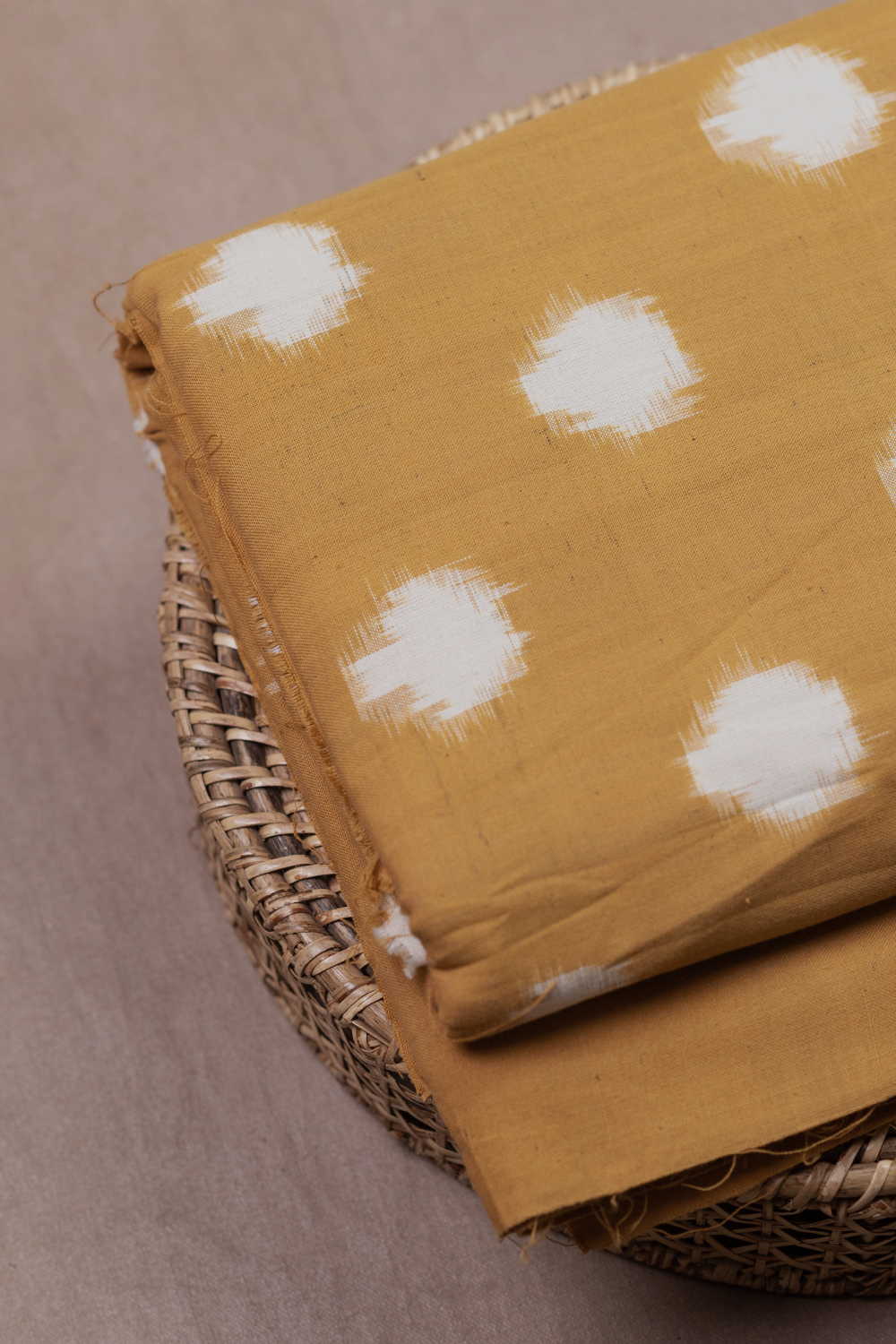 Cream Polka - Yellow Ikat Cotton Fabric