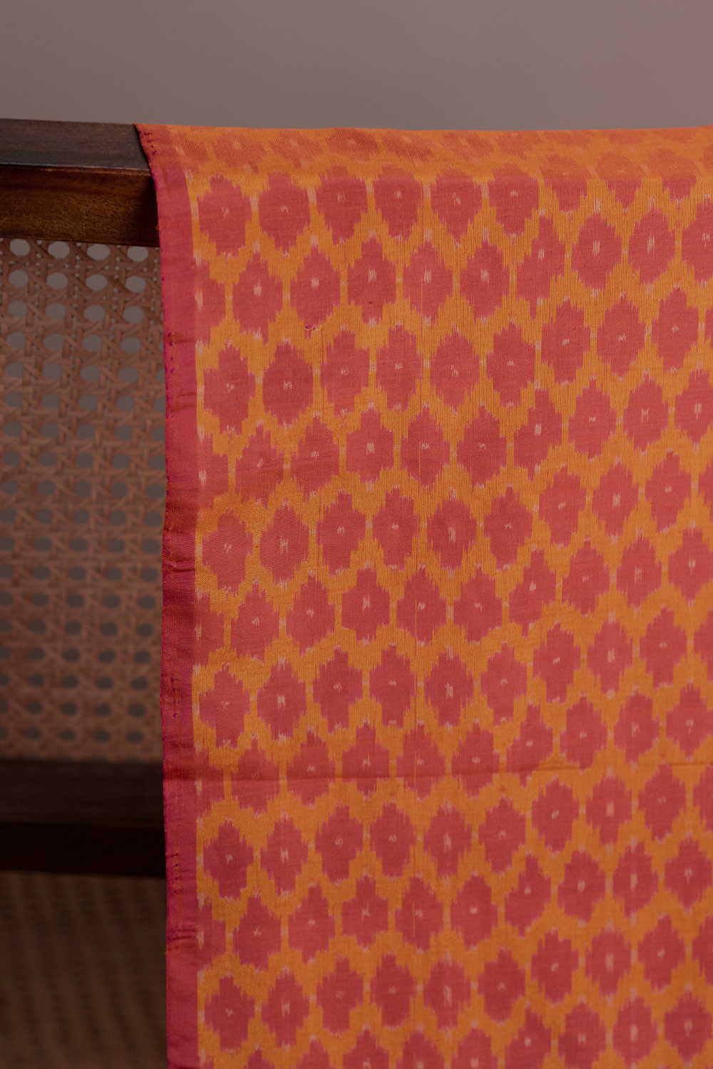 Orange Motifs - Yellow Ikat Silk Cotton Fabric