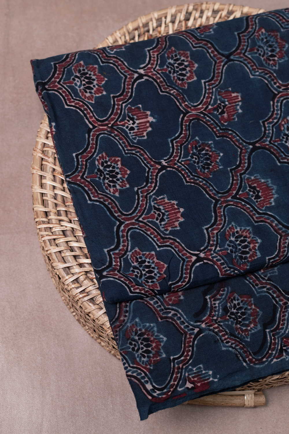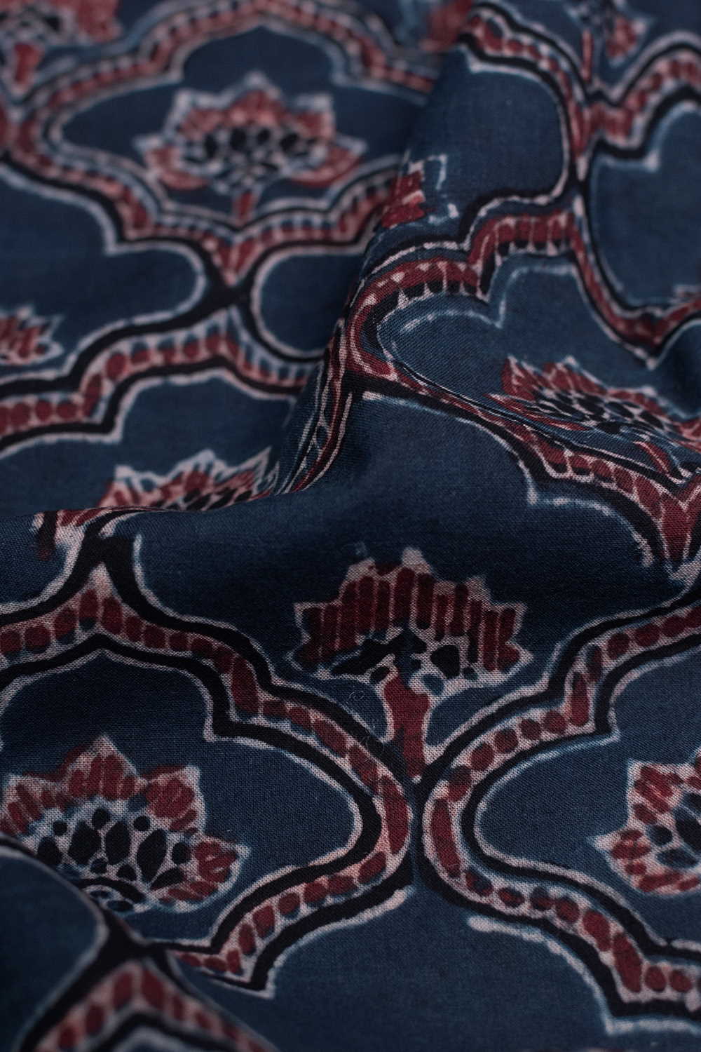 Maroon Pattern on Indigo Ajrak Cotton Fabric - 0.75m